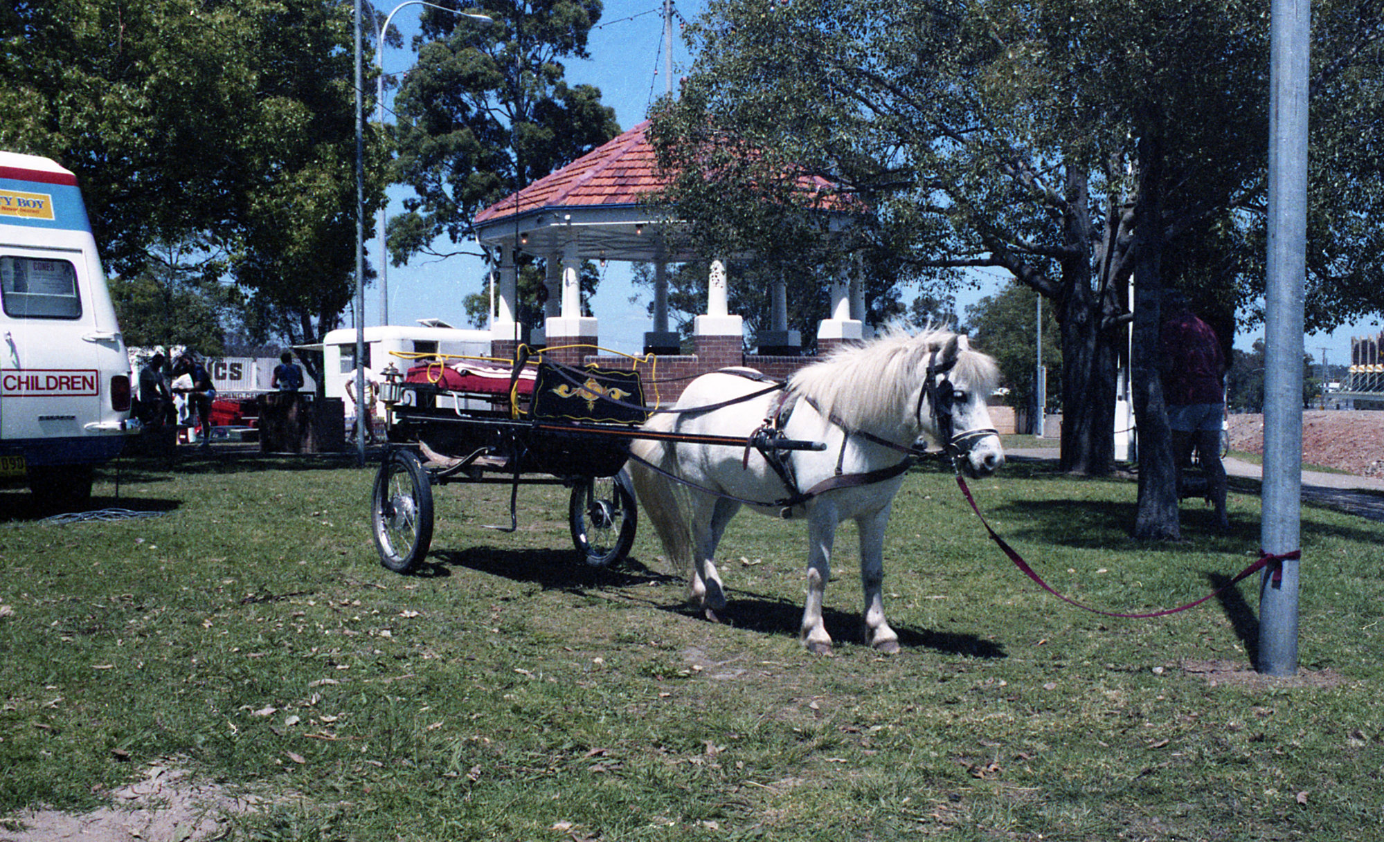 Pony and trap in Rotary Park in Kurri Kurri, November 1985