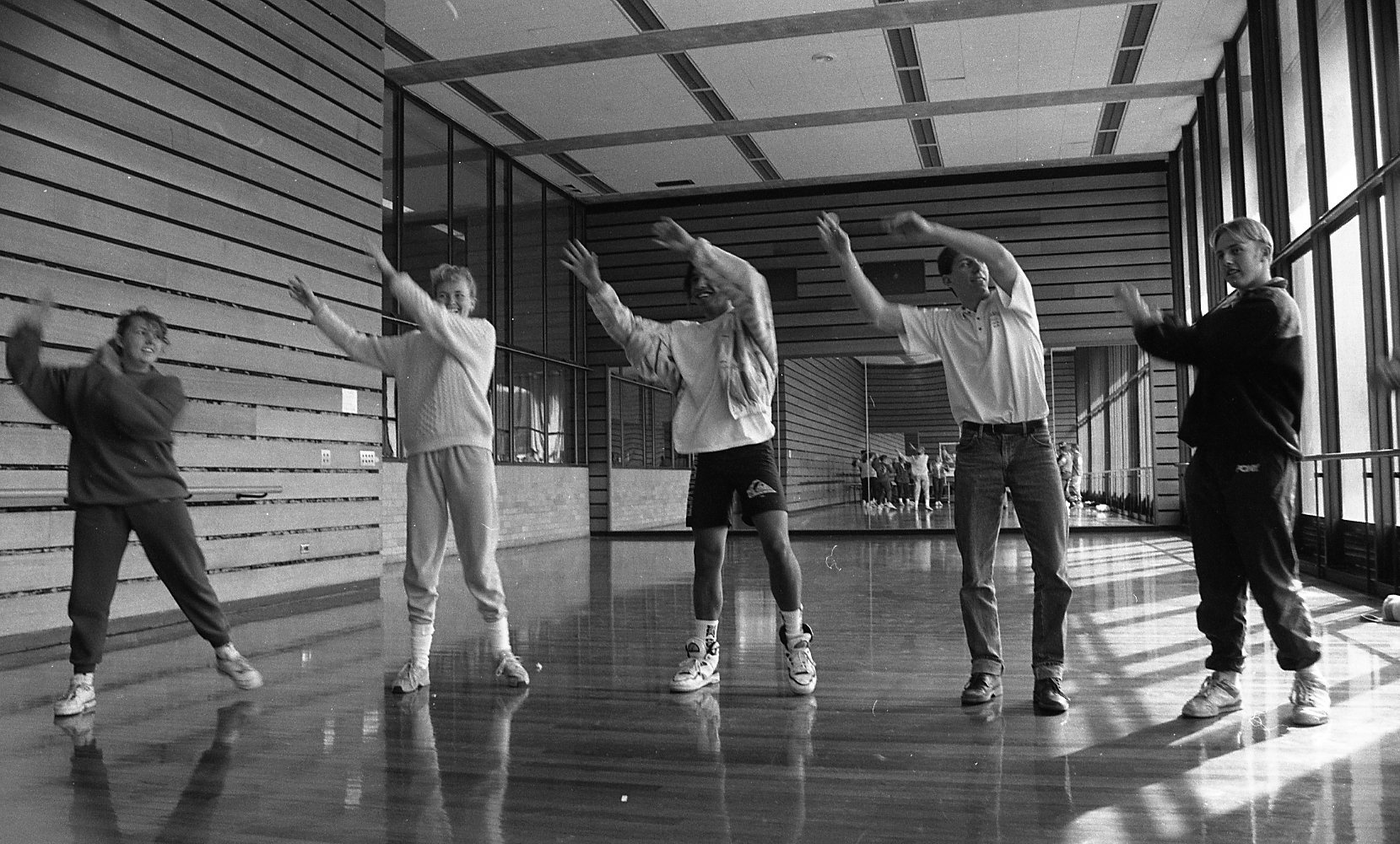 Physical Education students exercising in the gymnasium, the University of Newcastle, Australia - 1992
