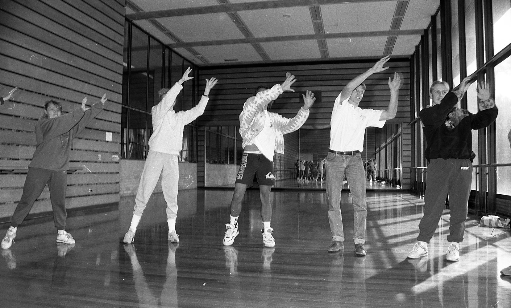 Physical Education students exercising in the gymnasium, the University of Newcastle, Australia - 1992 (1992), [B16370.92.223.6]. Living Histories, accessed 19/03/2026, https://livinghistories.newcastle.edu.au/nodes/view/10048