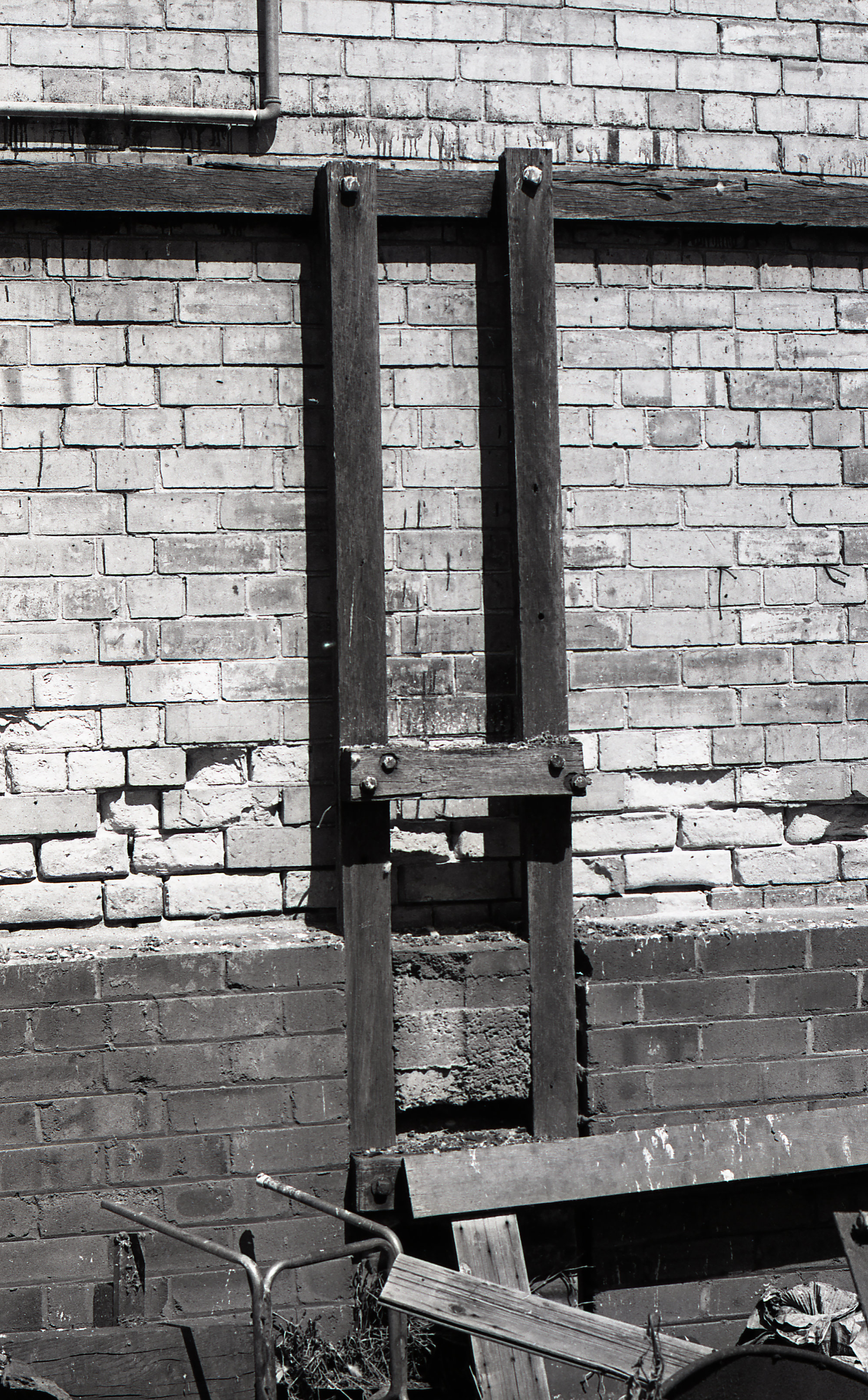 Bairstow, Damaris, Timber on side of Carrington Hydraulic Power House, March 1979 (March 1979), [C919-0144]. Living Histories, accessed 23/01/2026, https://livinghistories.newcastle.edu.au/nodes/view/100992