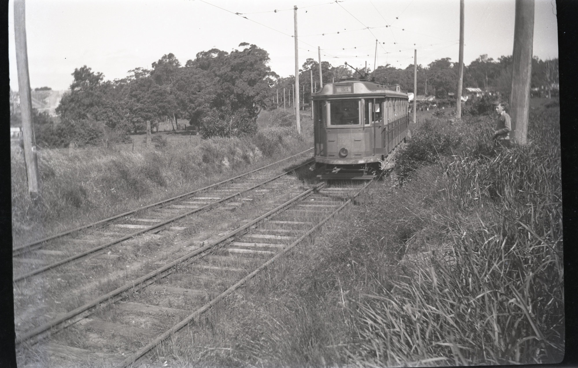 Perry, Arthur (1932 -), Tram on Wallsend Line alongside Jesmond Park (duplicate), [n.d] ([n.d]), [AP024]. Living Histories, accessed 14/04/2026, https://livinghistories.newcastle.edu.au/nodes/view/102868