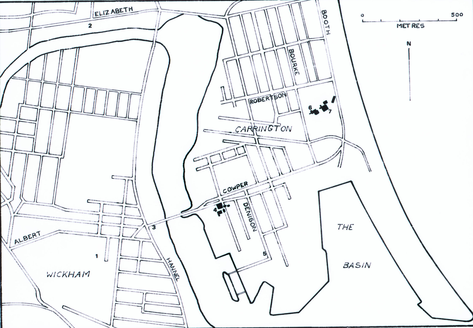 Bairstow, Damaris, Carrington, NSW, Lands Department map, adapted by D Bairstow, 1980 (1980), [C919-1406]. Living Histories, accessed 04/04/2026, https://livinghistories.newcastle.edu.au/nodes/view/104073