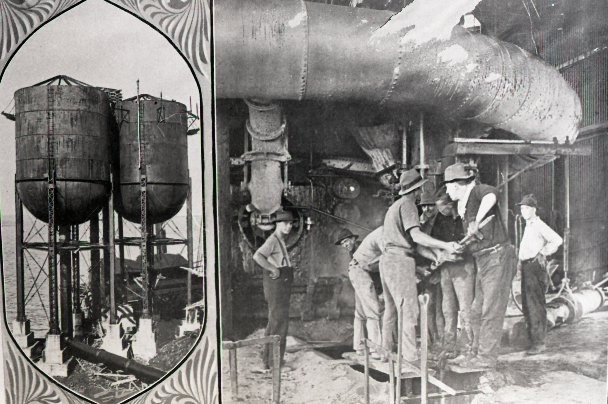 Bairstow, Damaris, BHP - from The Newcastle Steelworks, souvenir book of the opening, 2 June 1915 - (c) (a) water tanks for cooling, (b) tapping the blast furnace (2nd June 1915), [C919-1521]. Living Histories, accessed 10/04/2026, https://livinghistories.newcastle.edu.au/nodes/view/104188