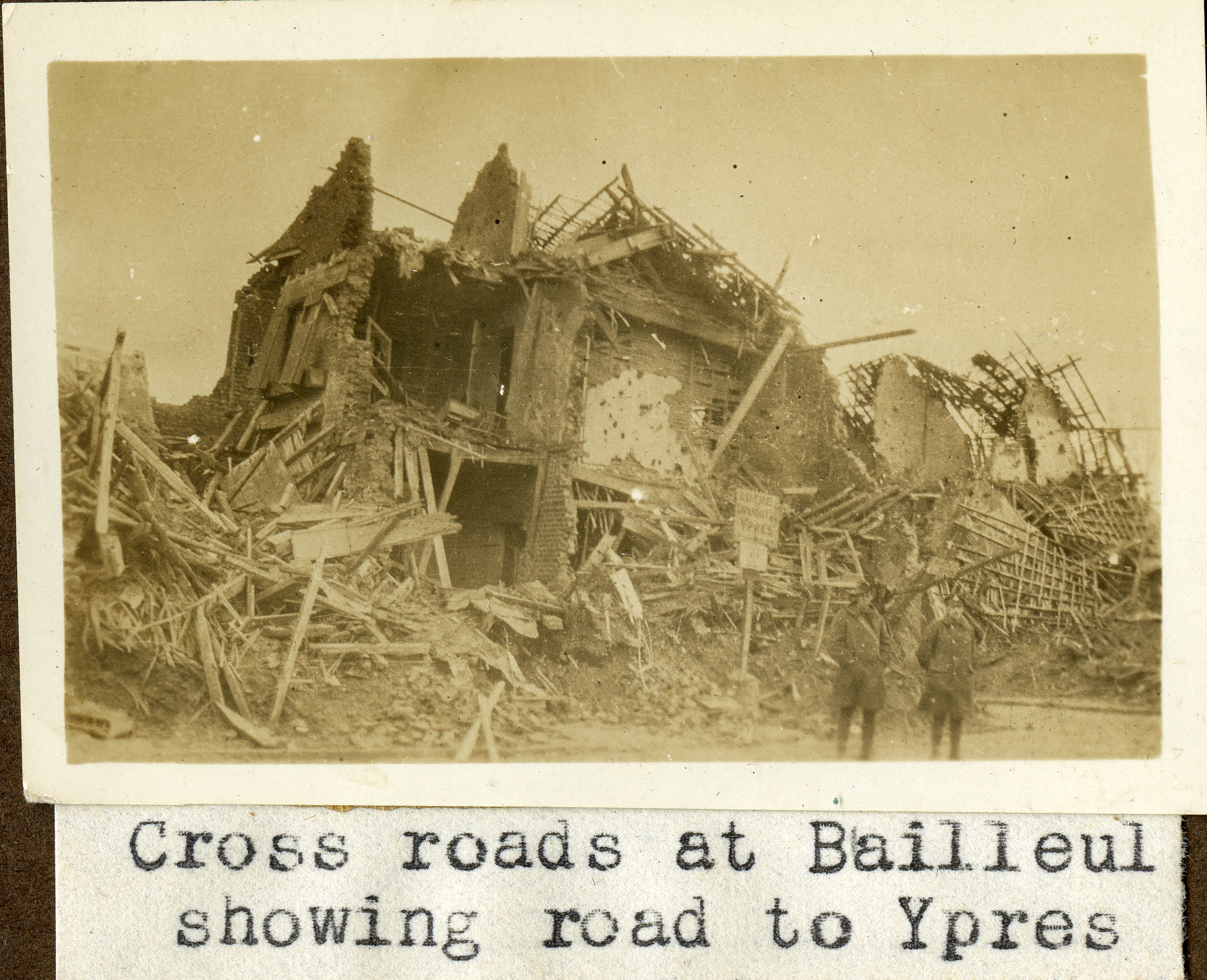 Cross roads at Bailleul showing road to Ypres, Belgium, [bourne-028]. Living Histories, accessed 25/03/2026, https://livinghistories.newcastle.edu.au/nodes/view/104226