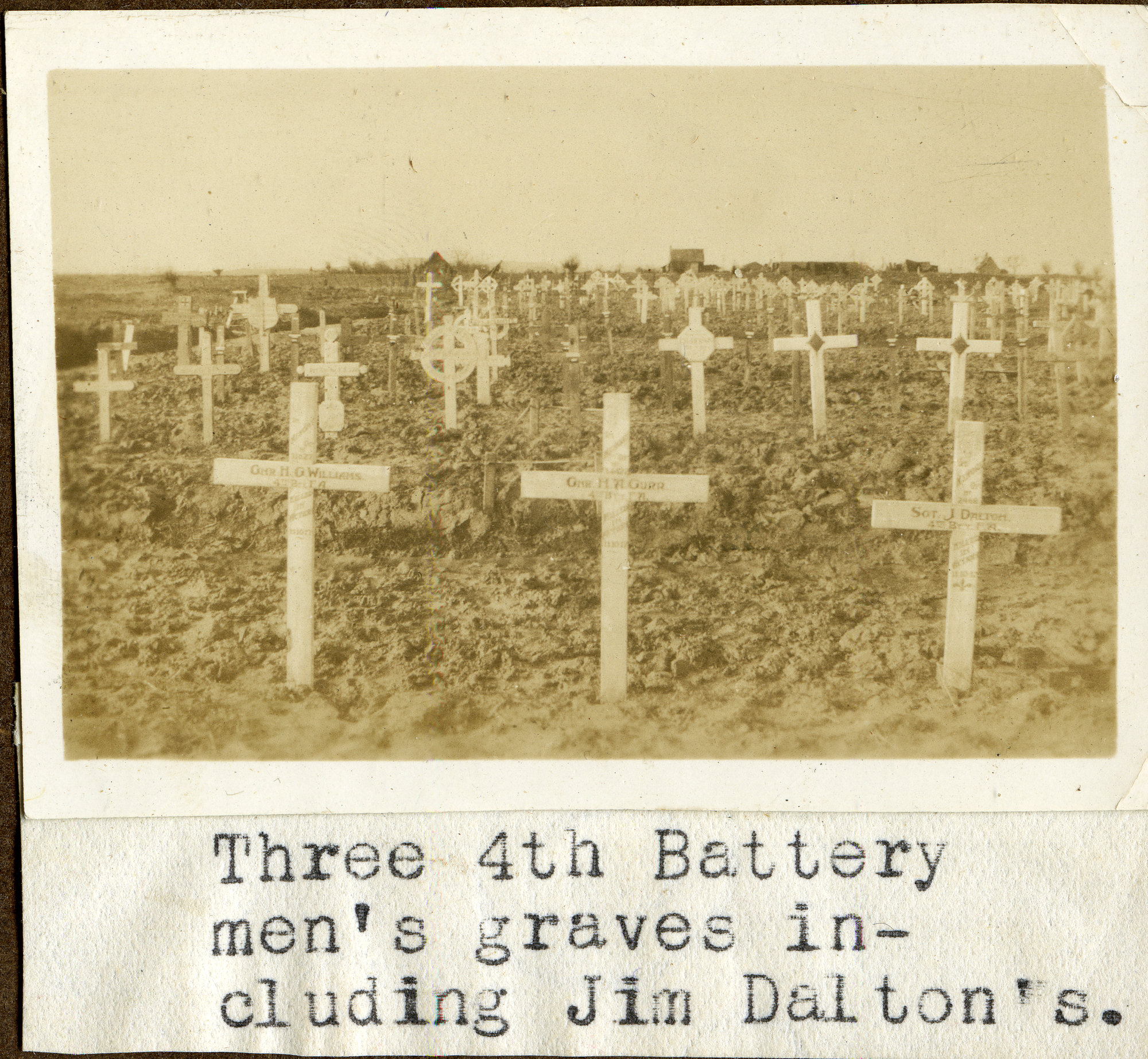 Three 4th Battery men's graves including Jim Dalton's, Dickebush, Belgium