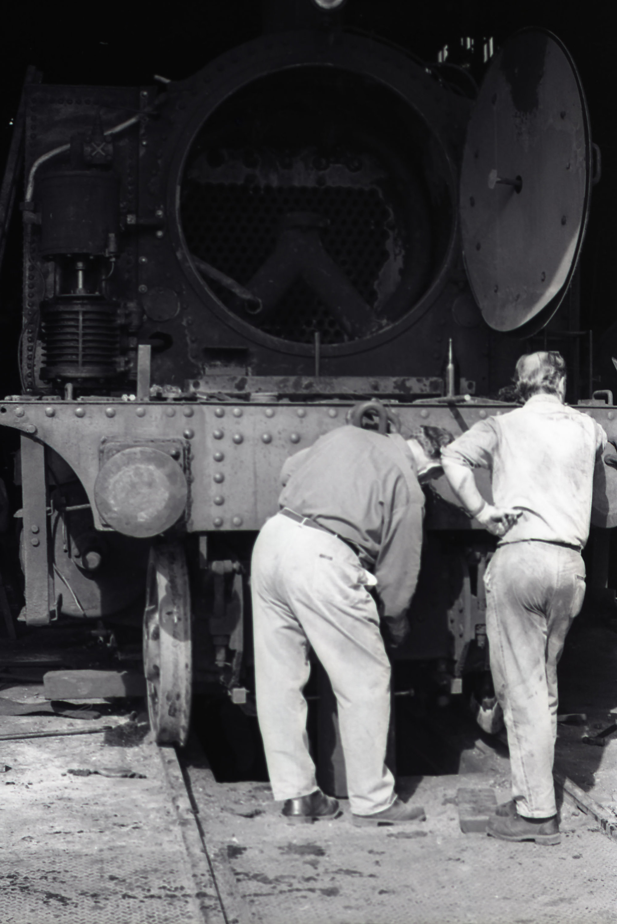 Bairstow, Damaris, Repairing a locomotive, East Greta Railway Workshops, 29 April 1980 (29th April 1980), [C919-1003]. Living Histories, accessed 15/04/2026, https://livinghistories.newcastle.edu.au/nodes/view/104317