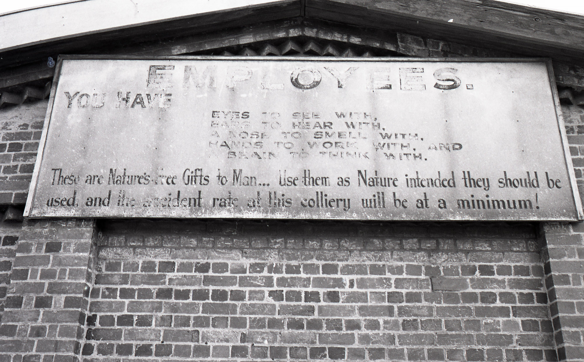 Bairstow, Damaris, Signage, Pelaw Main Colliery, Kurri Kurri, NSW, 29 April 1980 (29th April 1980), [C919-1018]. Living Histories, accessed 16/04/2026, https://livinghistories.newcastle.edu.au/nodes/view/104332