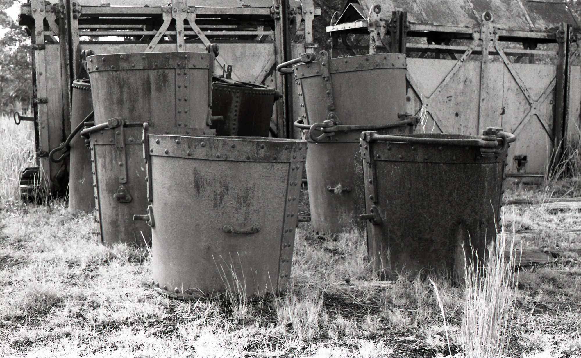 Bairstow, Damaris, Buckets from Bellbird Colliery at Richmond Main Colliery, Richmond Vale, NSW, 1980 (1980), [C919-1180]. Living Histories, accessed 24/03/2026, https://livinghistories.newcastle.edu.au/nodes/view/104494