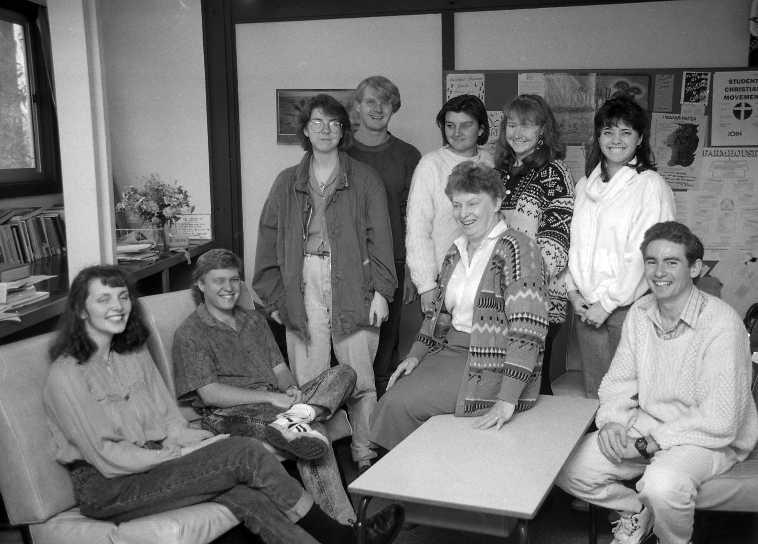 Helen Parker (centre) from the Careers Centre with unidentified students, the University of Newcastle, Australia - 1992 (1992), [B16369.92.184.3]. Living Histories, accessed 24/01/2026, https://livinghistories.newcastle.edu.au/nodes/view/10473