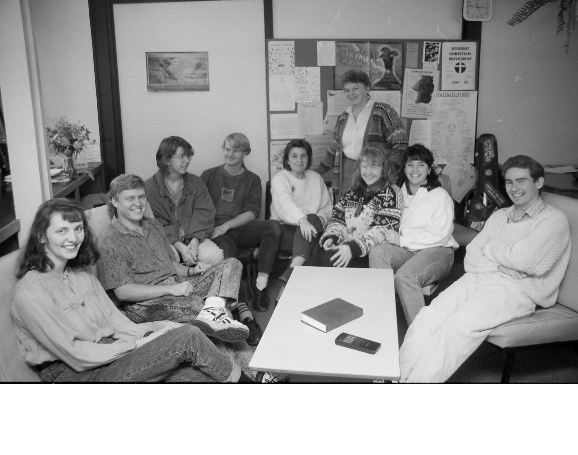 Helen Parker (background standing) from the Careers Centre with unidentified students, the University of Newcastle, Australia - 1992 (1992), [B16369.92.184.2]. Living Histories, accessed 10/03/2026, https://livinghistories.newcastle.edu.au/nodes/view/10474