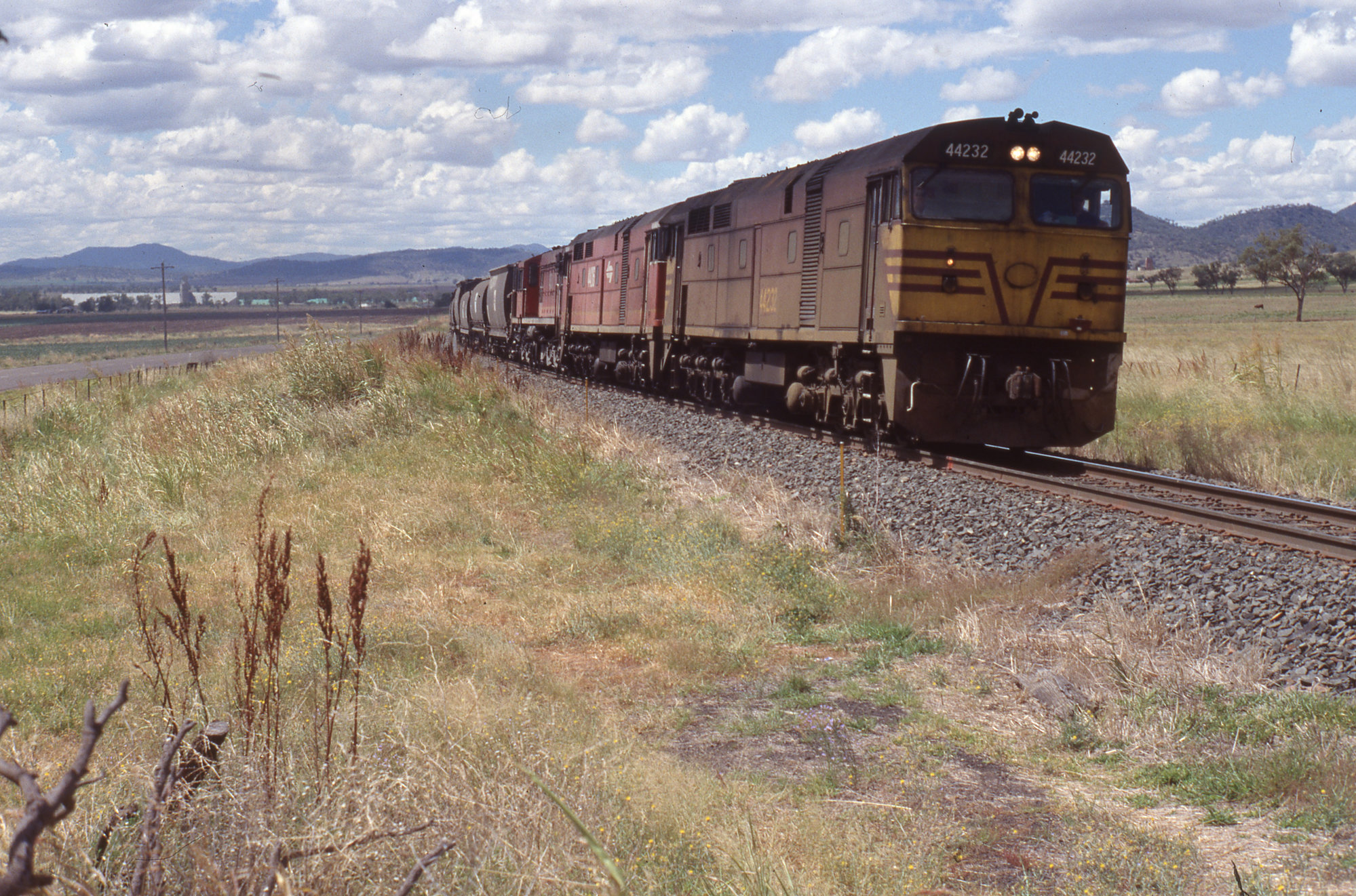 Astle, Anthony R, (1934 -), 44232, 442 Class and 45 Class, wheat train, Braefield, NSW, 24 January 1989 (24th January 1989), [ARA RND 148]. Living Histories, accessed 14/04/2026, https://livinghistories.newcastle.edu.au/nodes/view/105137