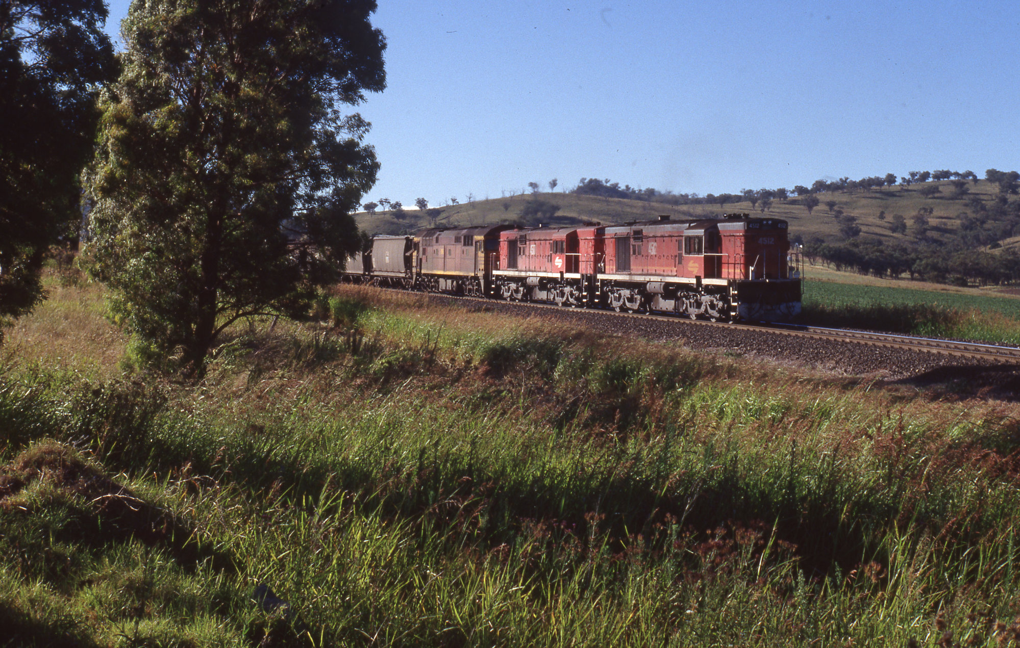 Astle, Anthony R, (1934 -), 8045, 4517 and 4512, banking wheat train, Chilcotts Creek, NSW, 25 January 1989 (25th January 1989), [ARA RND 152]. Living Histories, accessed 14/04/2026, https://livinghistories.newcastle.edu.au/nodes/view/105141