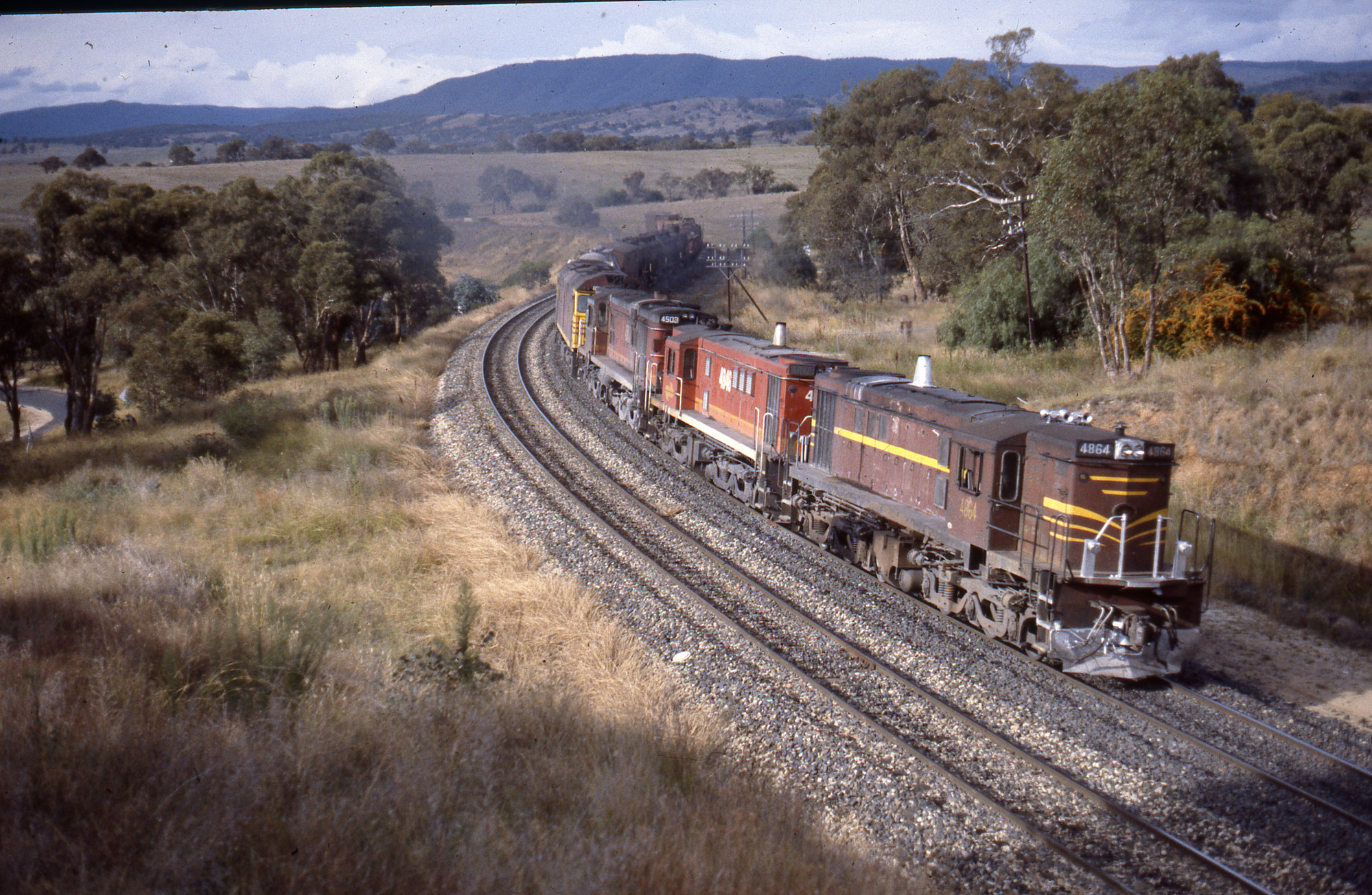 Astle, Anthony R, (1934 -), 4864, 48146, 4503 and 8035, freight train, Brewongle, NSW, 4 March 1989 (4th March 1989), [ARA RND 157]. Living Histories, accessed 14/04/2026, https://livinghistories.newcastle.edu.au/nodes/view/105146