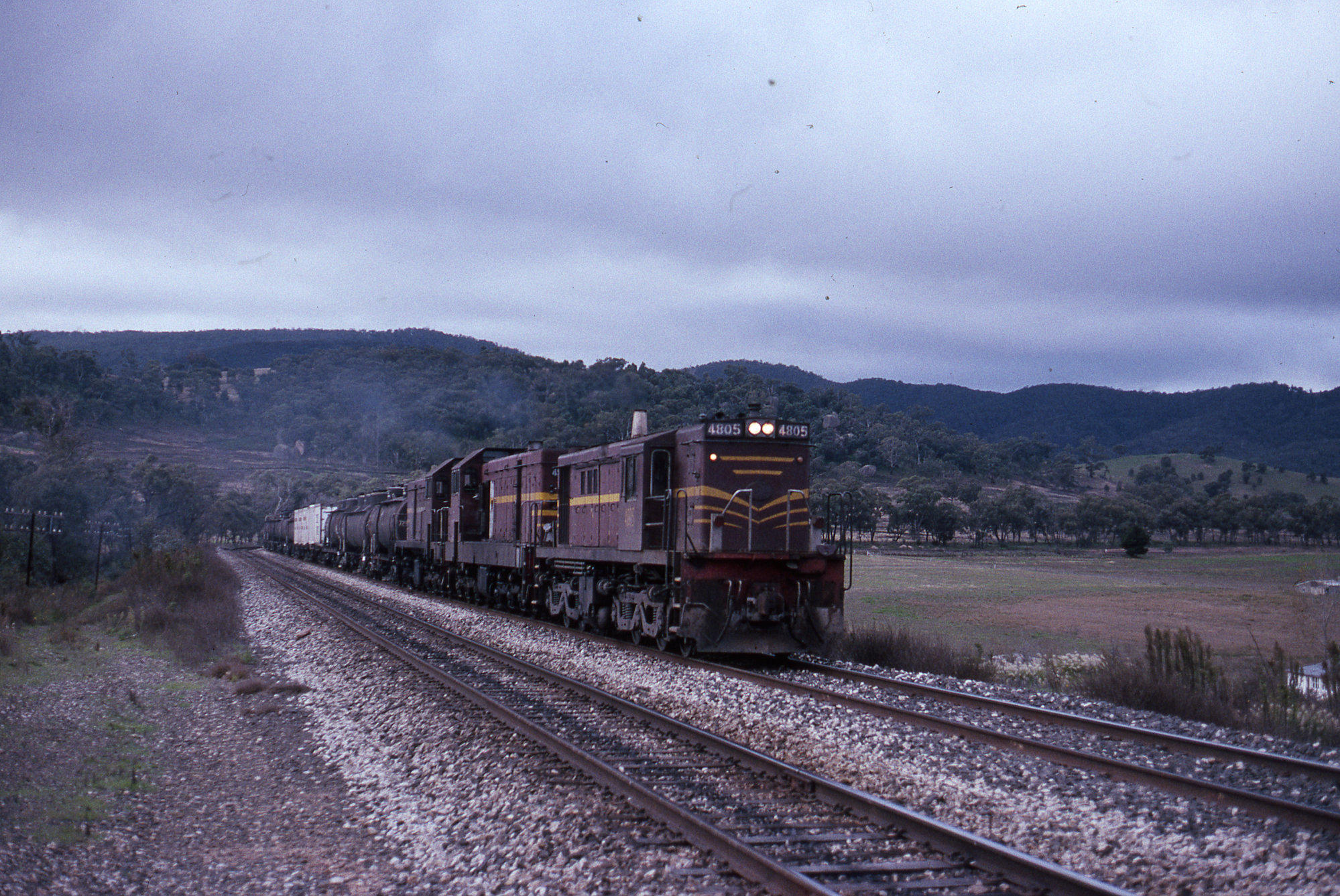 Astle, Anthony R, (1934 -), 4805, 4904 and 4911, fuel train, Gemalla, NSW, 20 May 1989 (20th May 1989), [ARA RND 173]. Living Histories, accessed 16/04/2026, https://livinghistories.newcastle.edu.au/nodes/view/105162