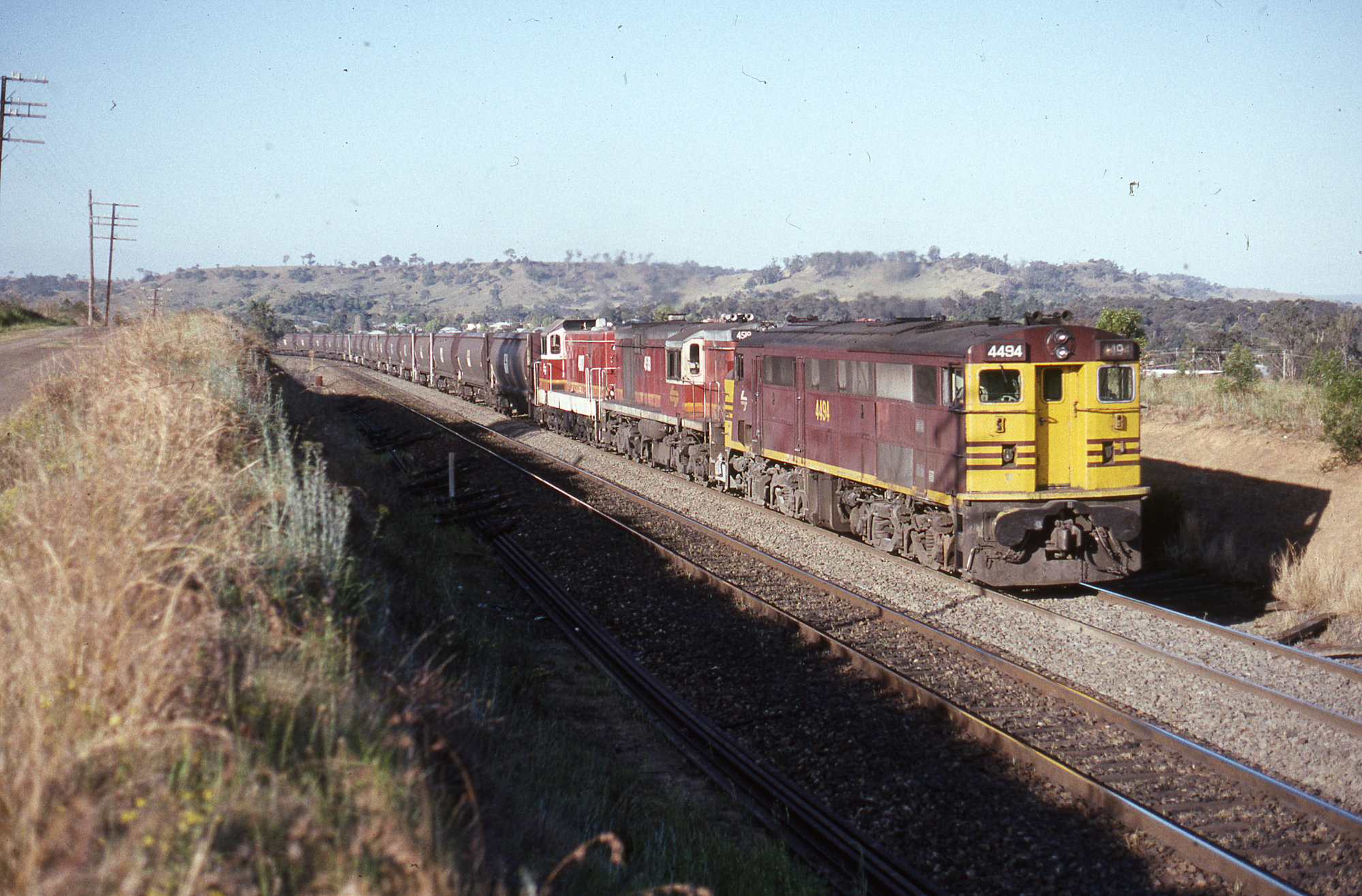 4494, 4907 and 4519, coal train, Picton, NSW, 28 September 1989