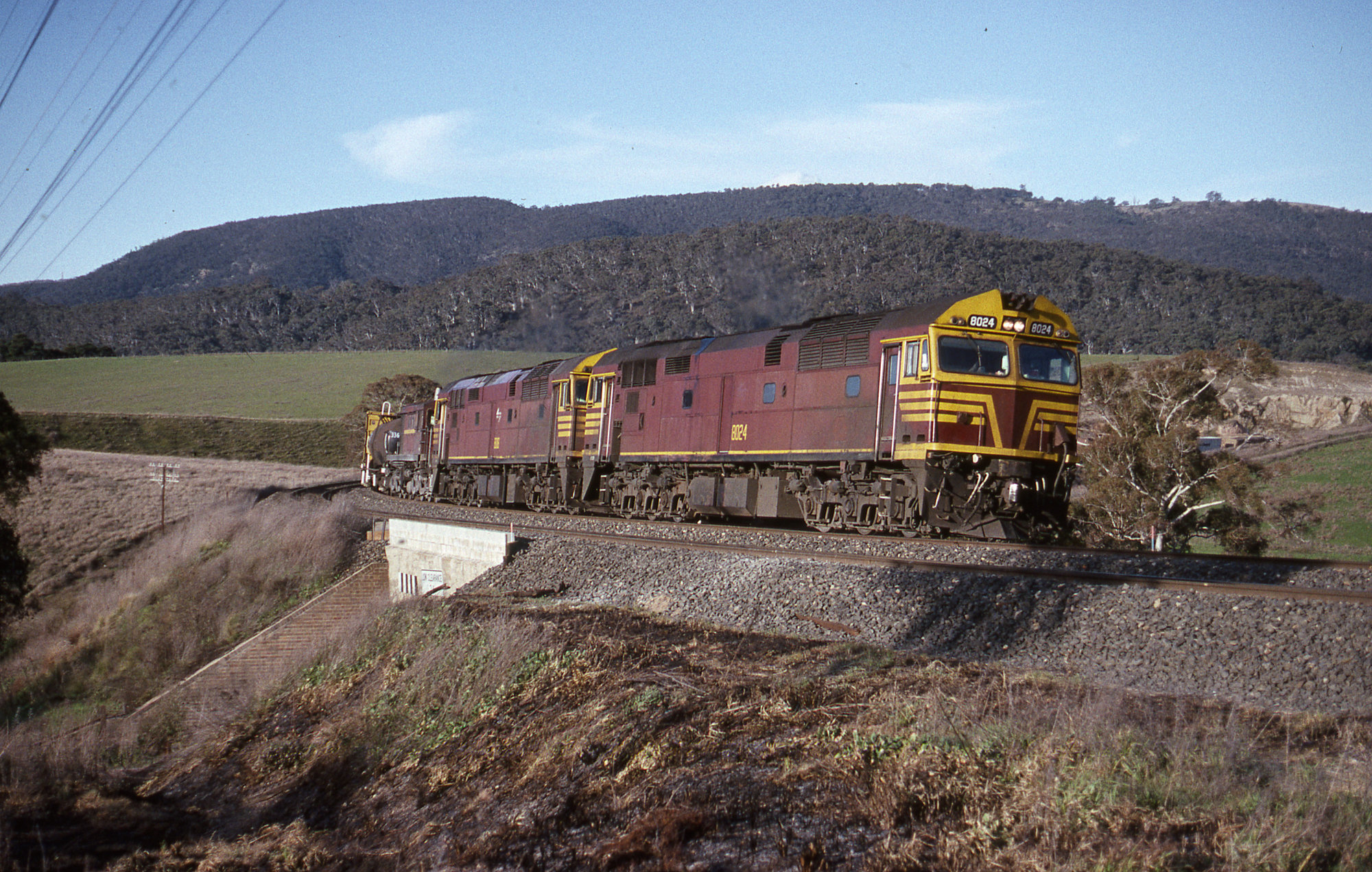 Astle, Anthony R, (1934 -), 8024, 8018 and 4877, fuel train, Locksley, NSW, [1980s] ([1980s]), [ARA RND 222]. Living Histories, accessed 16/04/2026, https://livinghistories.newcastle.edu.au/nodes/view/105211
