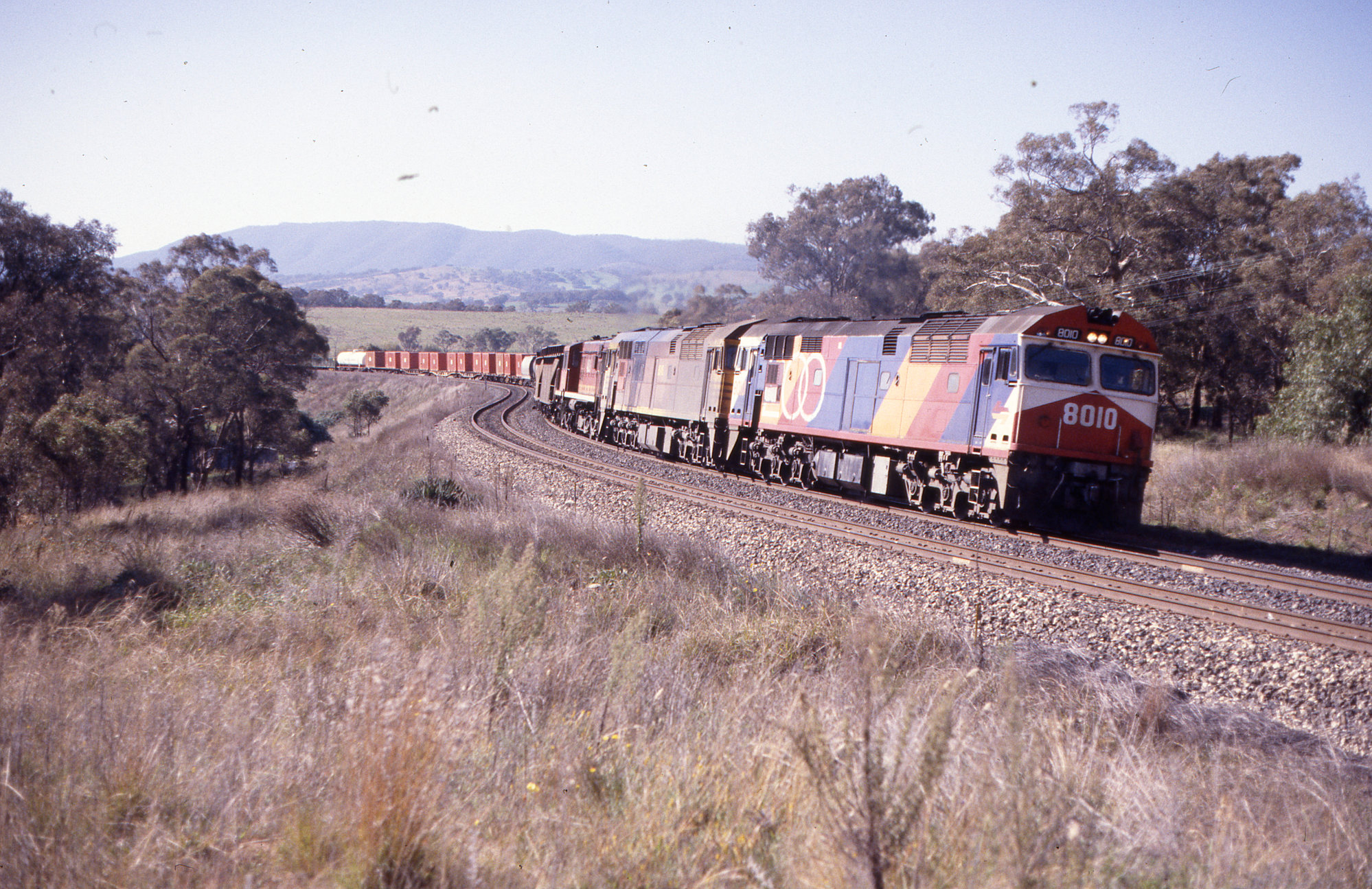 8010, 8045 and 45 Class, freight train, Brewongle 12 May 1990