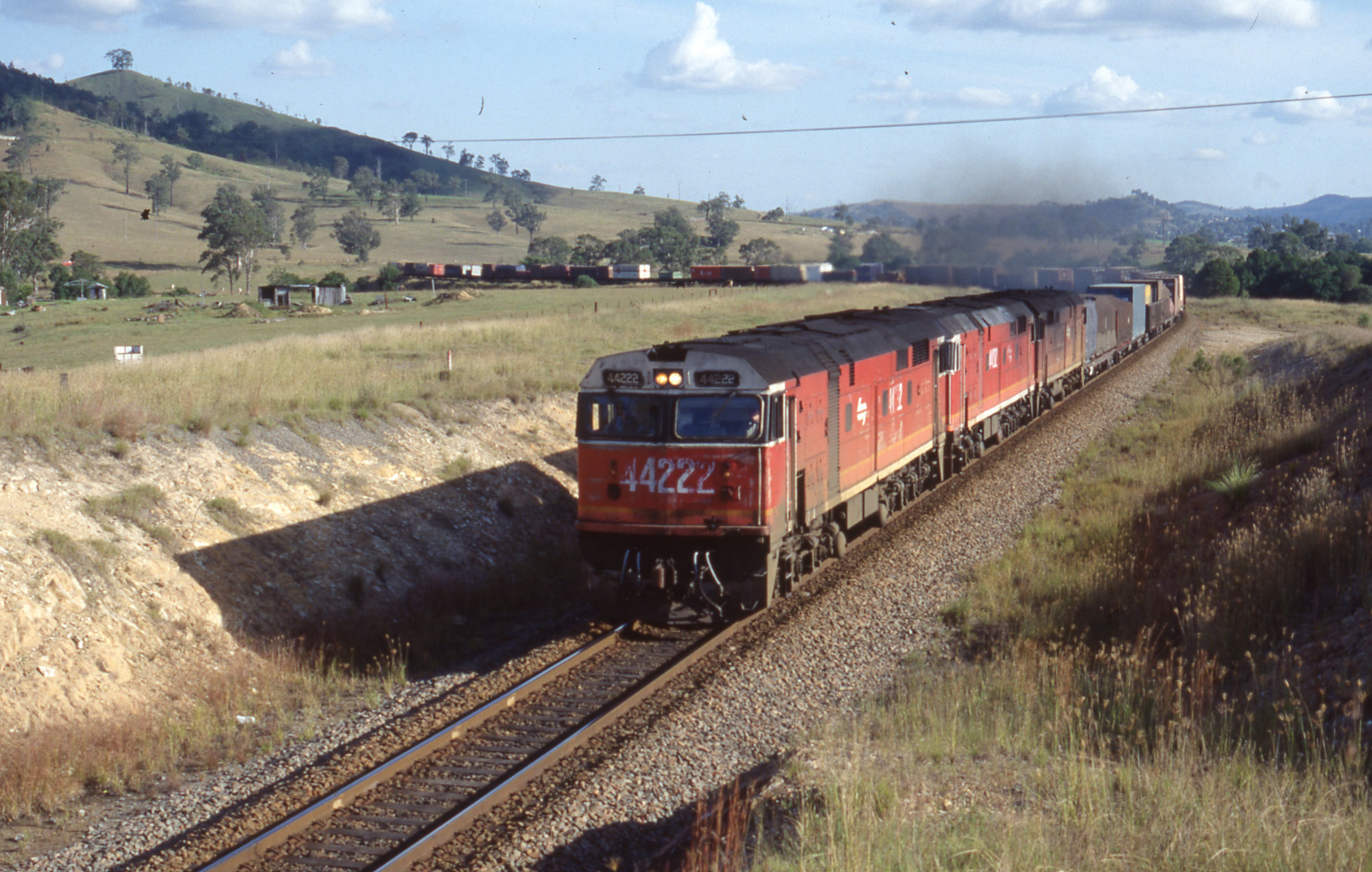 44222, 44212 and 442 Class, express freight, Dingadee, NSW, 23 April 1993