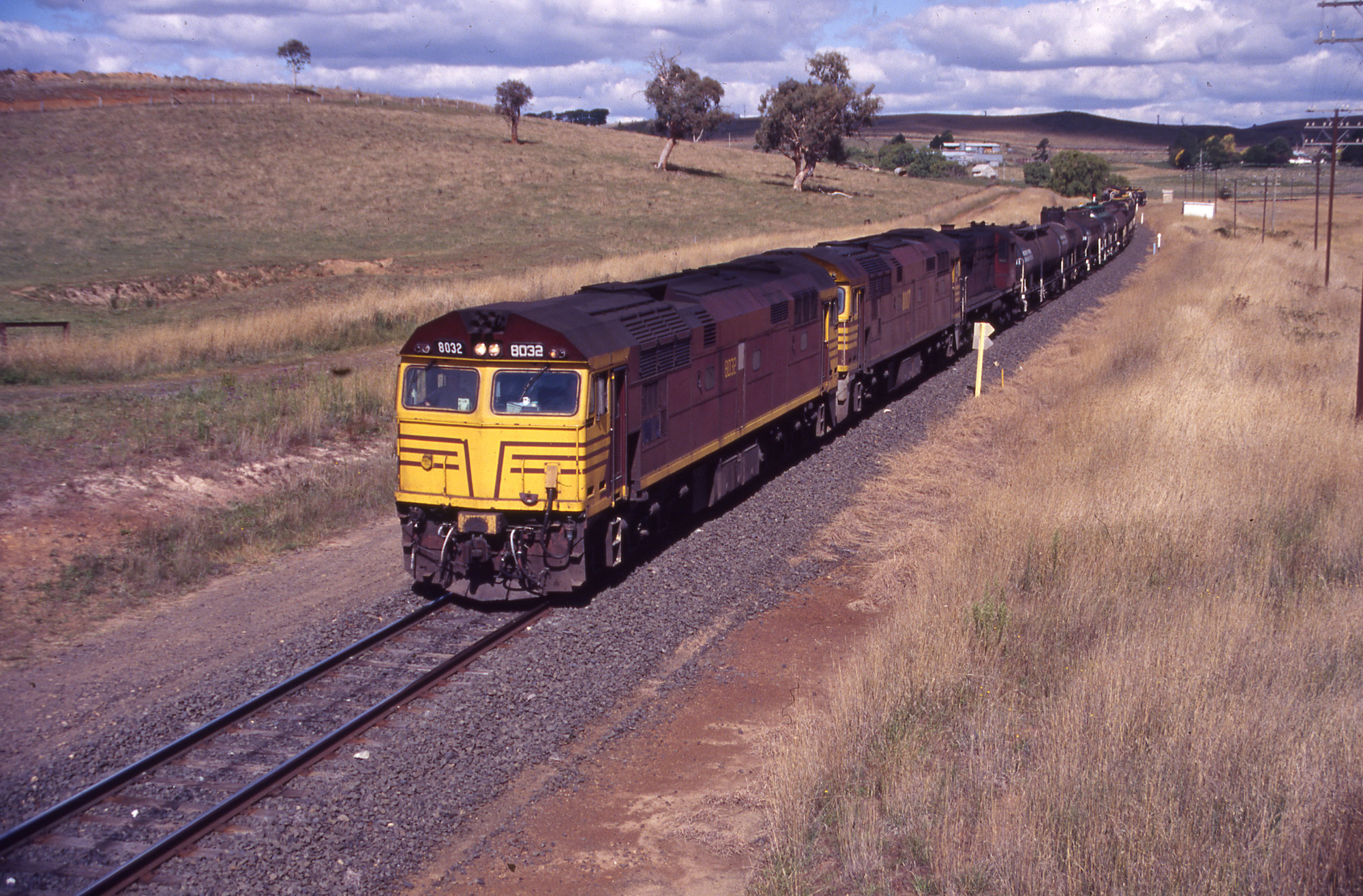 8032, 8007 and 4509, fuel train, Murrobo, NSW, 26 March 1994