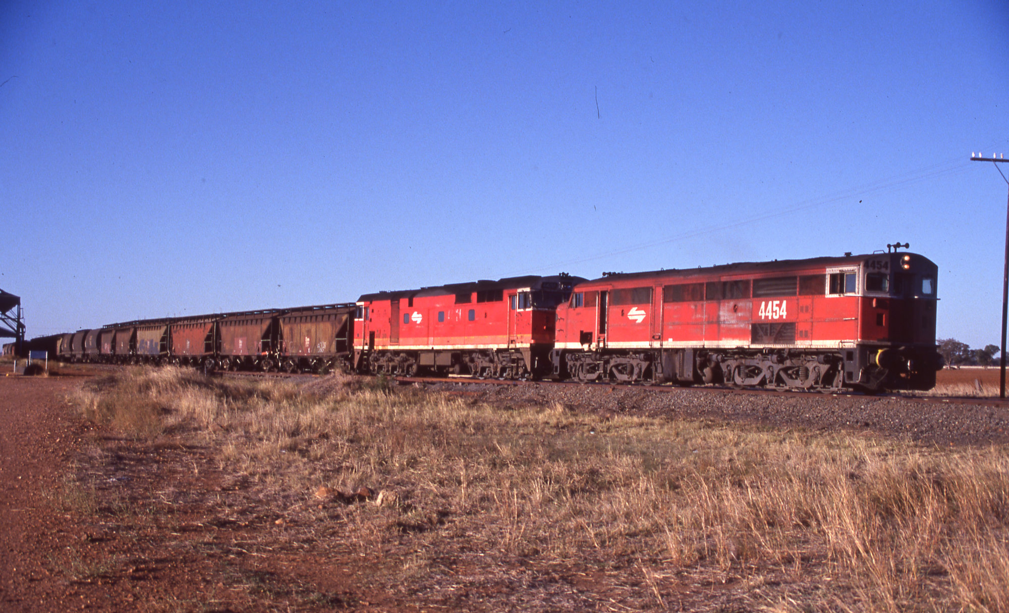 4454 and 442 Class, wheat train, [Dubbo, area, NSW], 20 April 1994