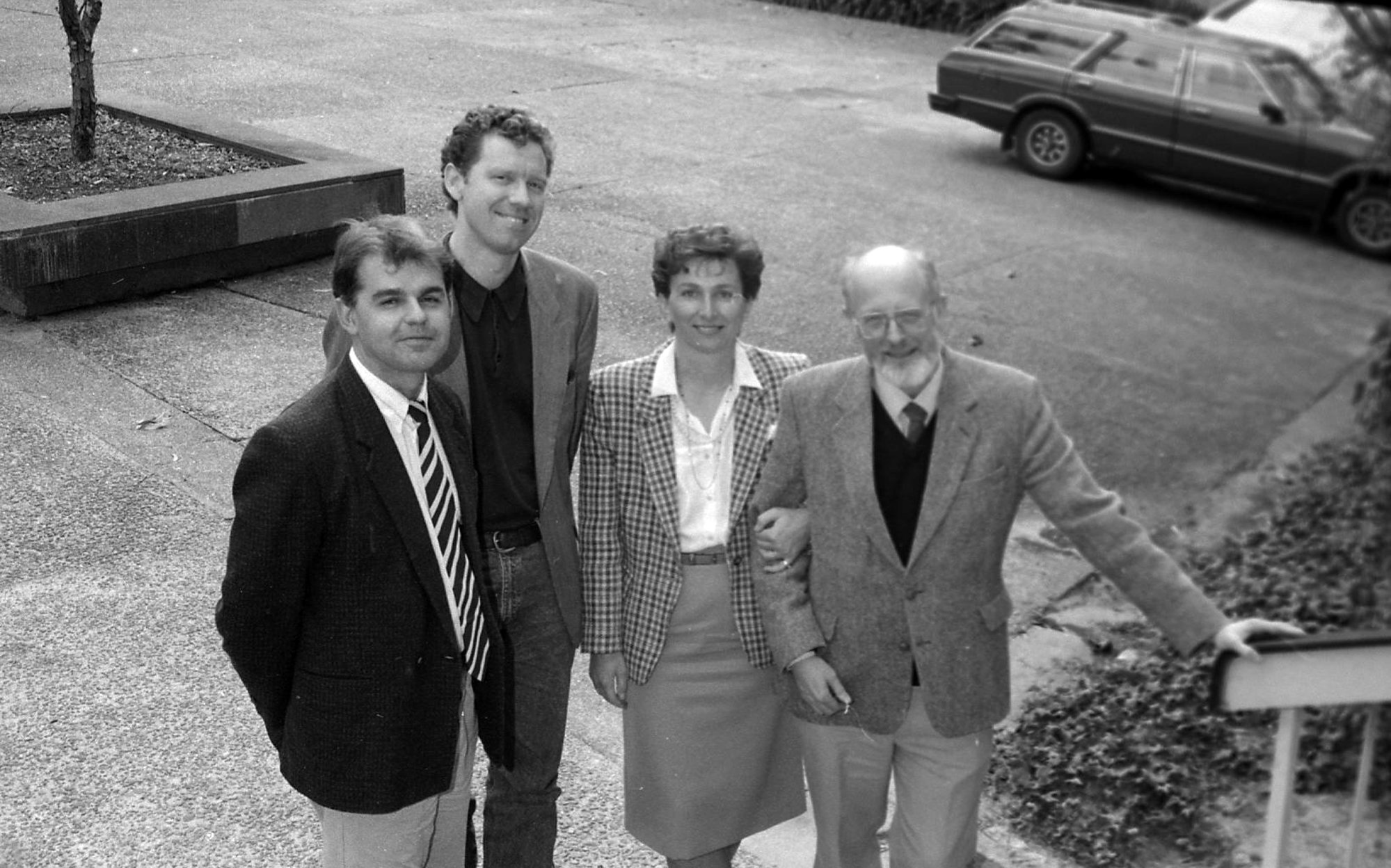 Professor David Lemmings (l) with three unidentified people, the University of Newcastle, Australia - 1992