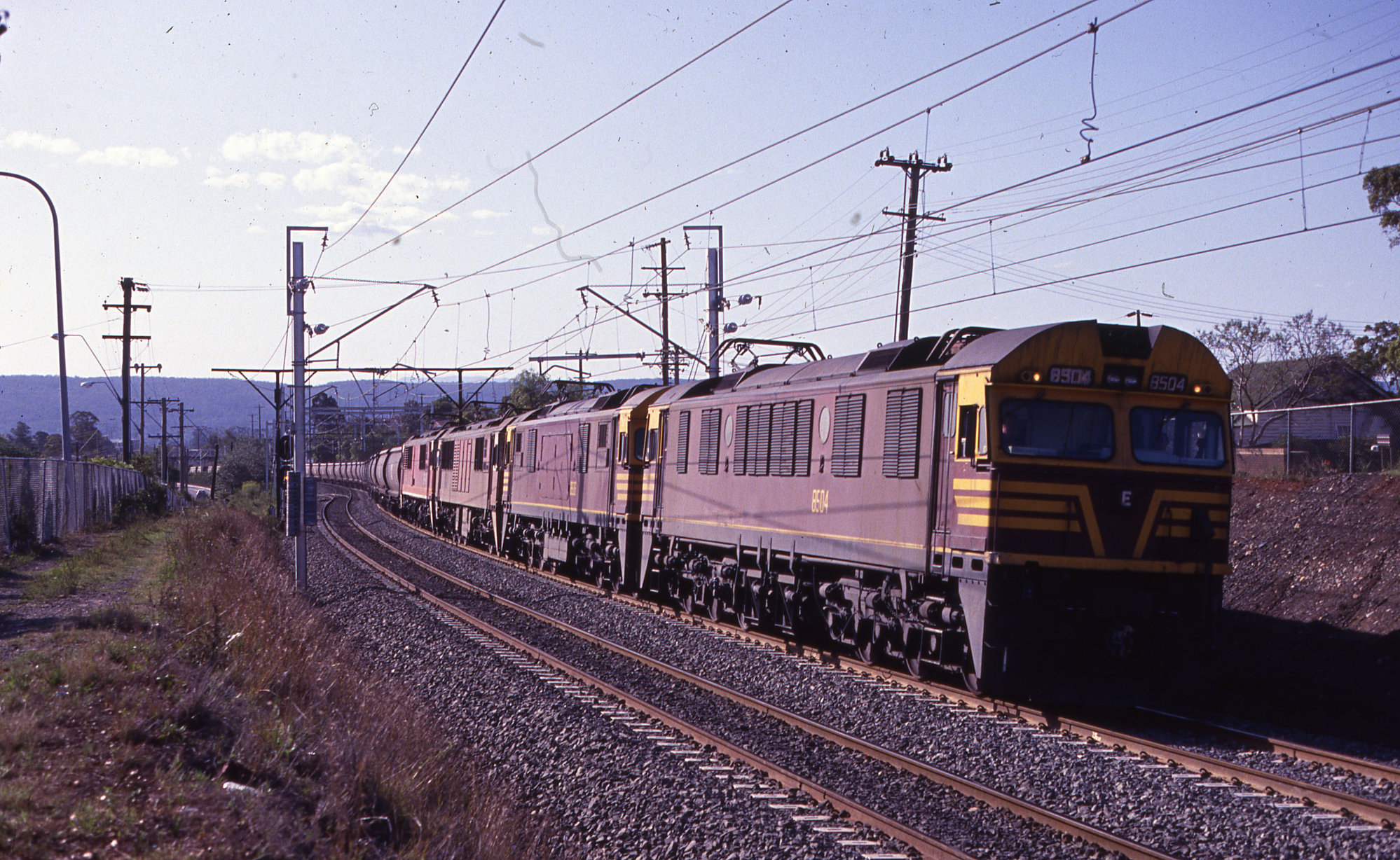 8504, 8506, 86 Class and 8608, coal train, Penrith, NSW, 19 December 1991
