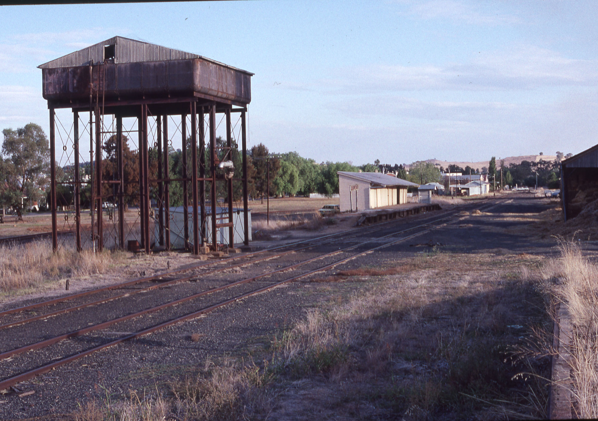 Water tower and railway station, Canowindra, NSW, 13 April 1991