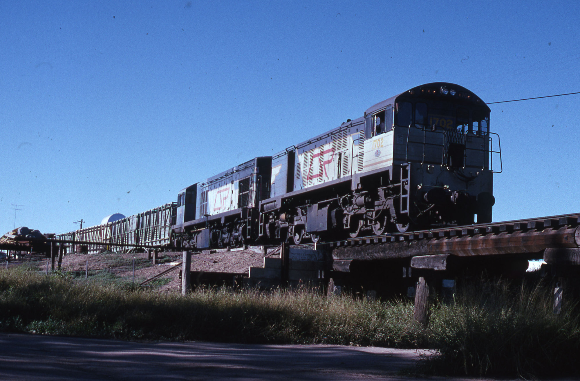 1702 and 1502, cattle train, Goondiwindi, Qld, 30 June 1989