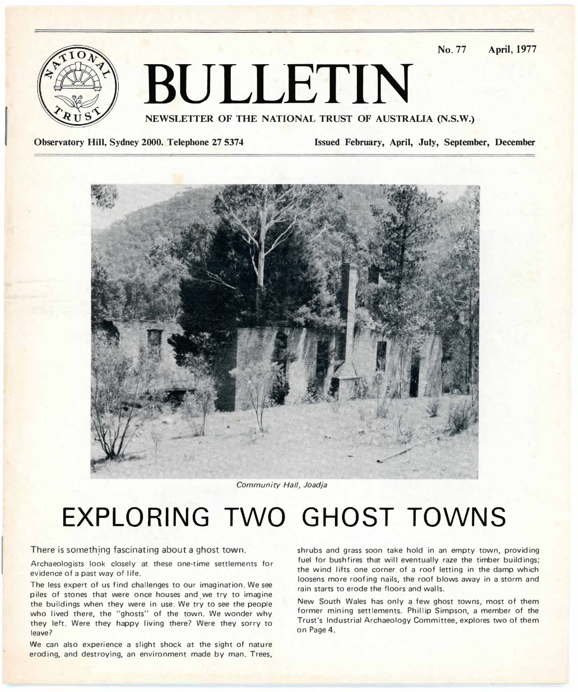 National Trust of Australia (NSW), National Trust Bulletin (NSW), No. 77, April 1977, [National Trust Bulletin (NSW), No. 77, 04 1977]. Living Histories, accessed 25/03/2026, https://livinghistories.newcastle.edu.au/nodes/view/106147