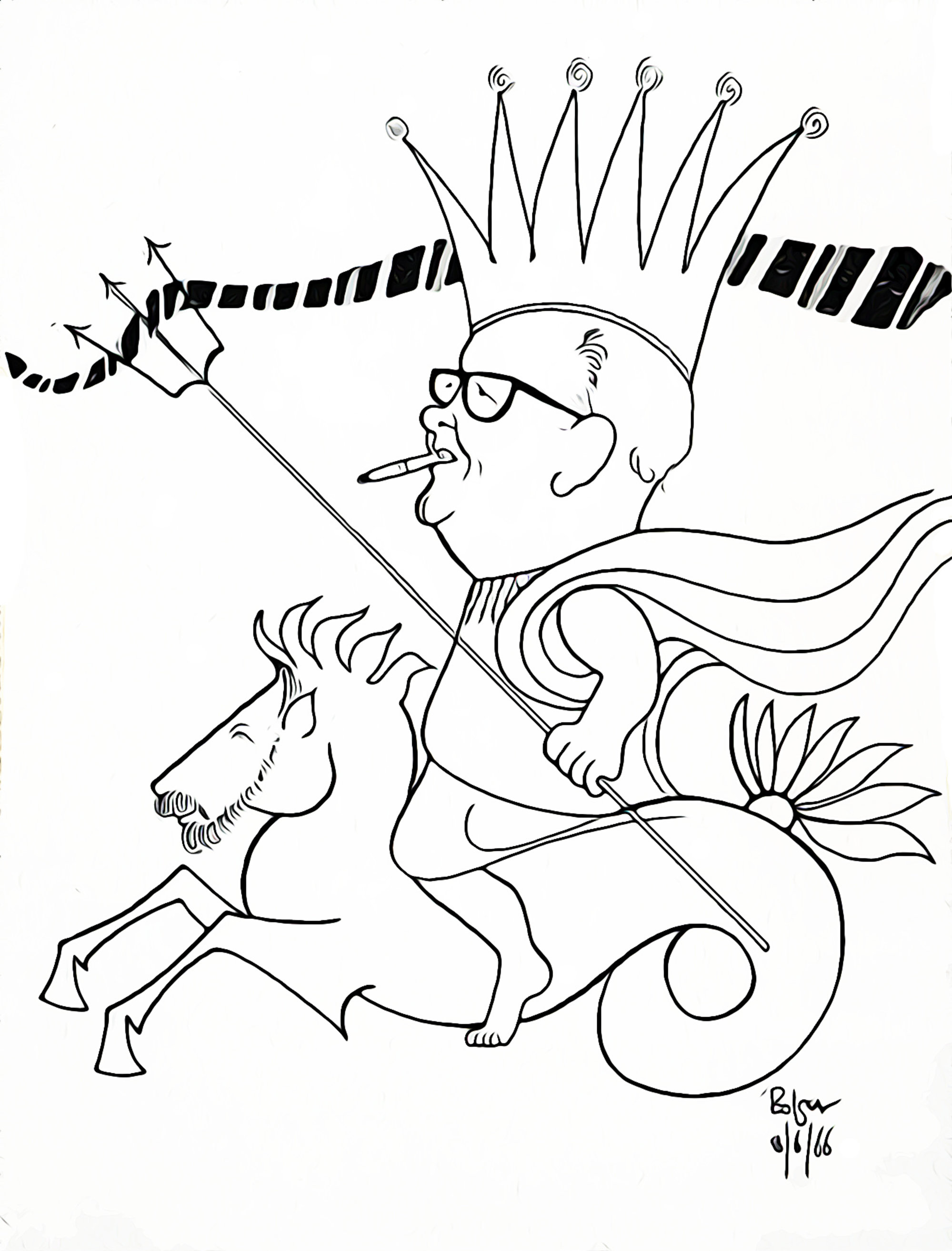 Cartoon drawing of the first Vice-Chancellor, JJ Auchmuty, by Bolger, 8 June 1966, the University of Newcastle, Australia