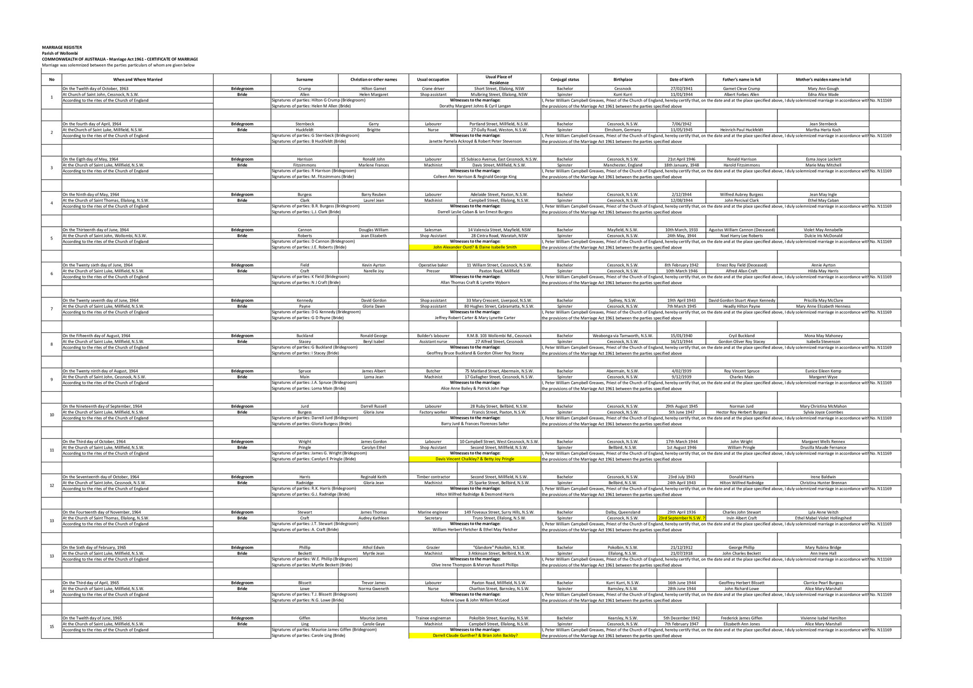 Paver, Michael (Transcriber), Transcription: Wollombi marriage register, 1963 - 1967 (Between 12th October 1963 and 8th April 1967), [B6210B]. Living Histories, accessed 15/04/2026, https://livinghistories.newcastle.edu.au/nodes/view/106341