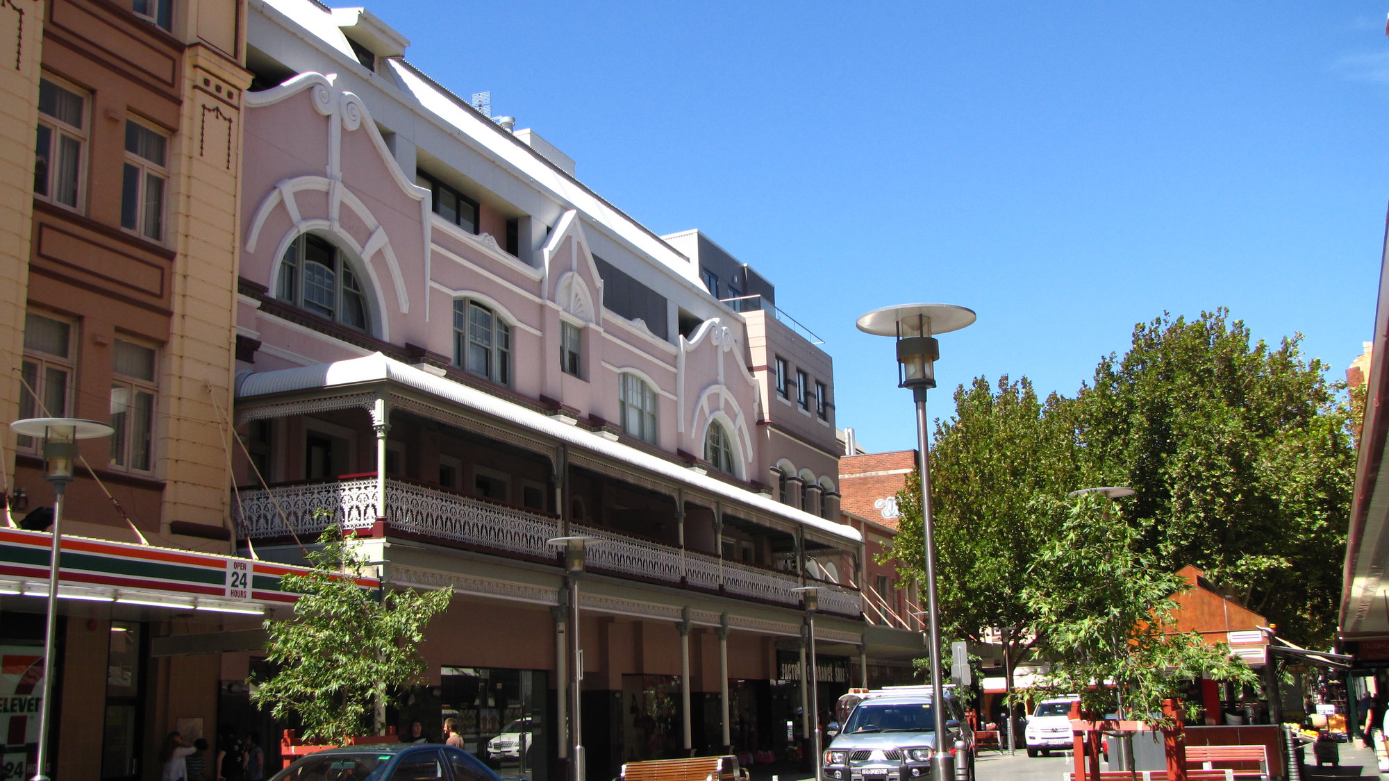 Building with wrought iron verandah, Hunter Street Mall, Newcastle, NSW, 8 February 2010
