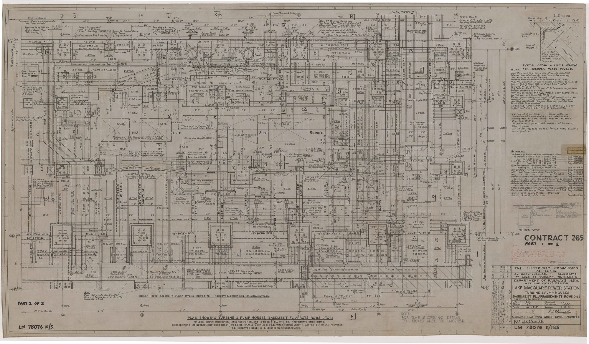 Electricity Commission of NSW, LM78076 K5 Lake Macquarie (Wangi) Power Station Turbine & Pump Houses – Basement Floor Arrangements Rows 9-14 (10th October 1952), [LM78076 K5]. Living Histories, accessed 04/04/2026, https://livinghistories.newcastle.edu.au/nodes/view/108220