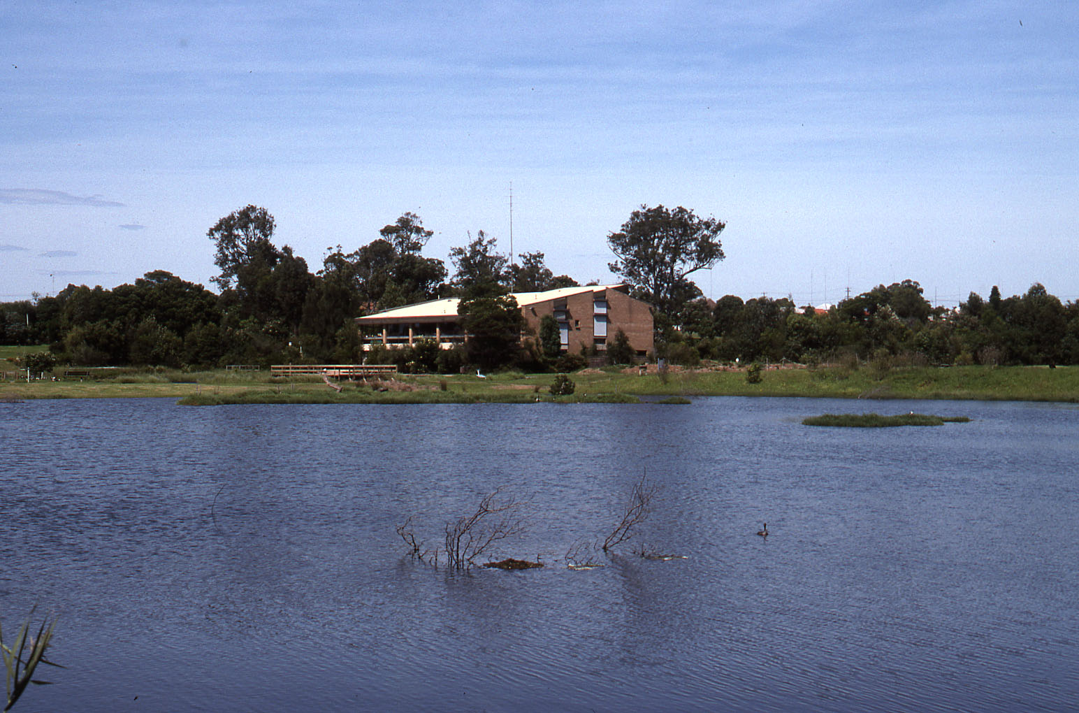 Visitors Centre across Brambles Pond, Shortland Wetlands, March 1995