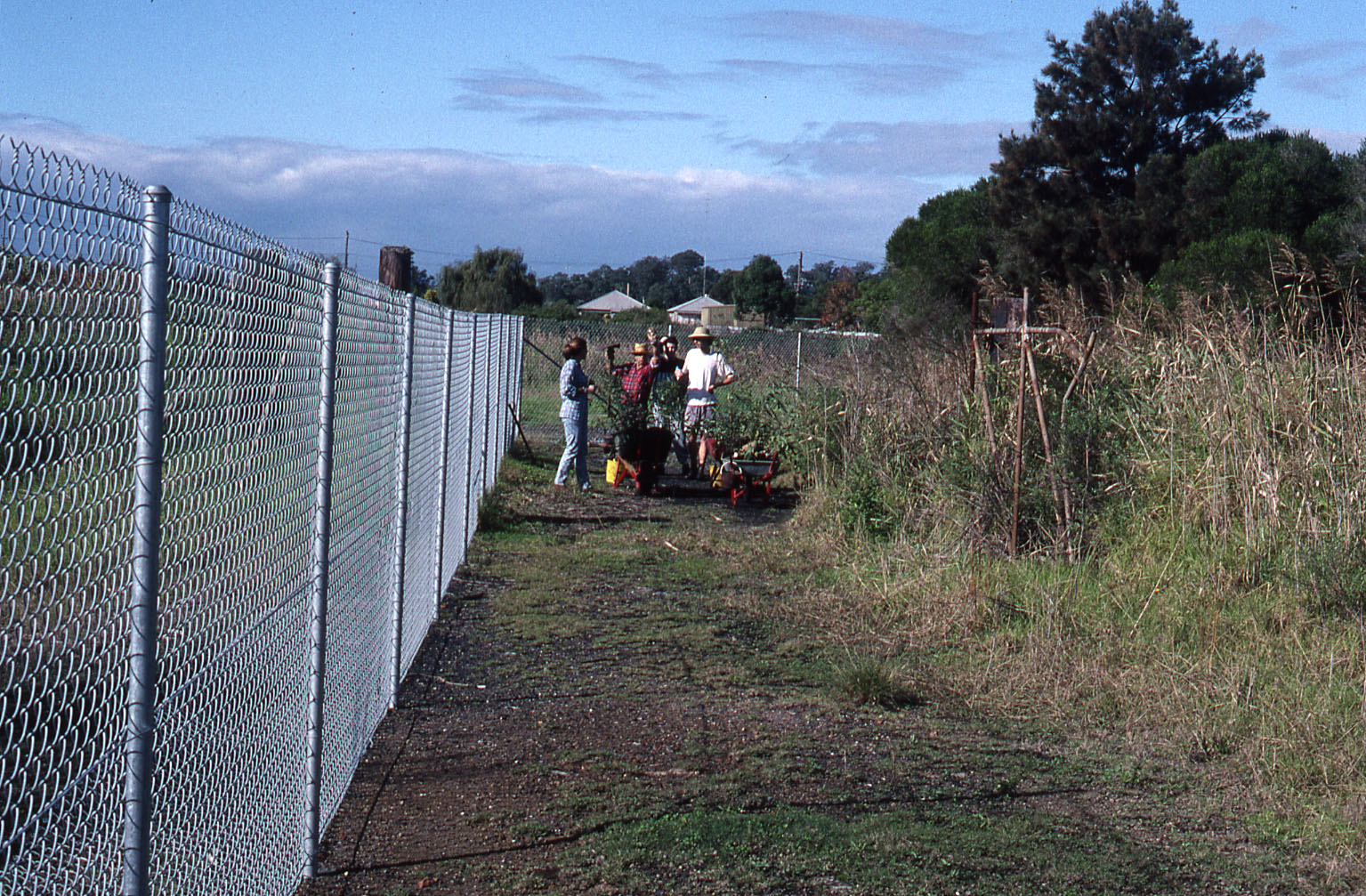 Patrick Lightfoot, Body Shop staff planting behind windmill, working bee, Hunter Wetlands, Shortland, NSW, May 1997 (May 1997), [HWB3_0107]. Living Histories, accessed 01/05/2026, https://livinghistories.newcastle.edu.au/nodes/view/109815