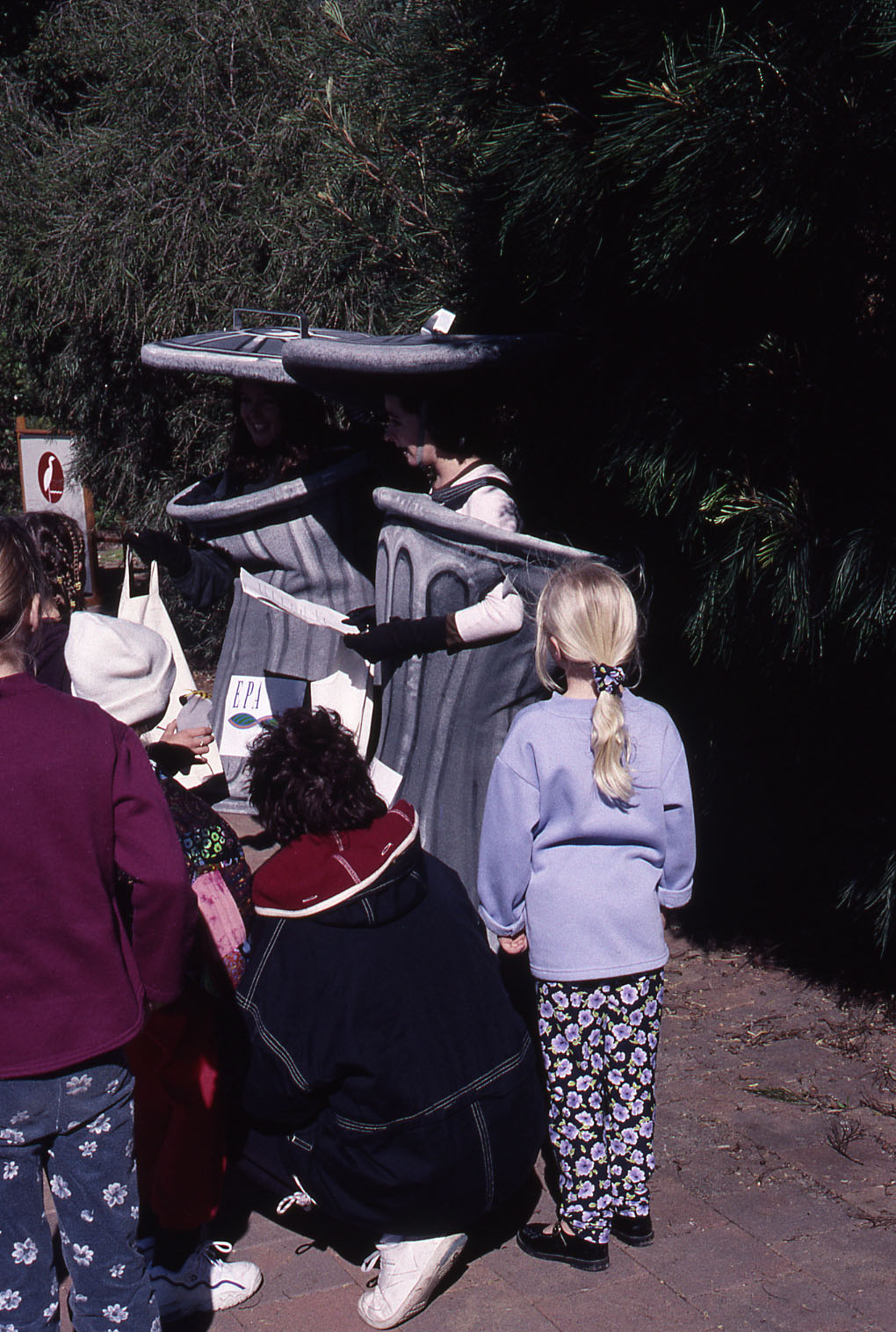 Patrick Lightfoot, Recycling bins, World Environment Day, Hunter Wetlands, Shortland, NSW, 6 June 1998 (6th June 1998), [HWB3_0142]. Living Histories, accessed 19/03/2026, https://livinghistories.newcastle.edu.au/nodes/view/109850