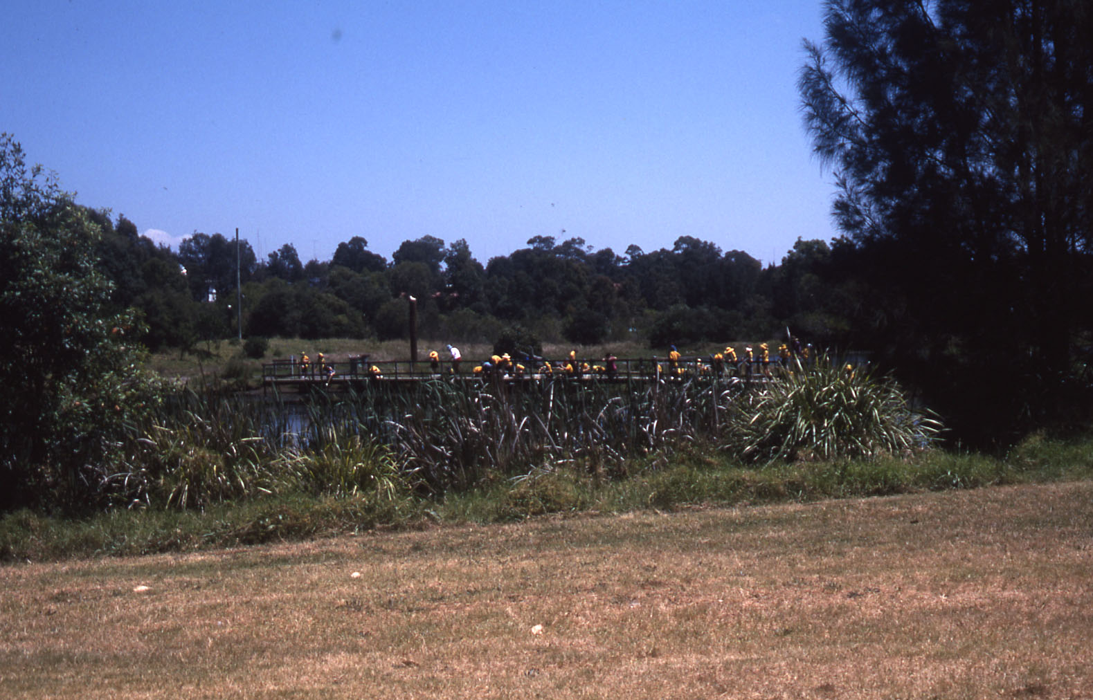 Patrick Lightfoot, School children dip netting, BHP Pond, Hunter Wetlands, Shortland, NSW, 2002 (2002), [HWB3_0239]. Living Histories, accessed 06/03/2026, https://livinghistories.newcastle.edu.au/nodes/view/109947