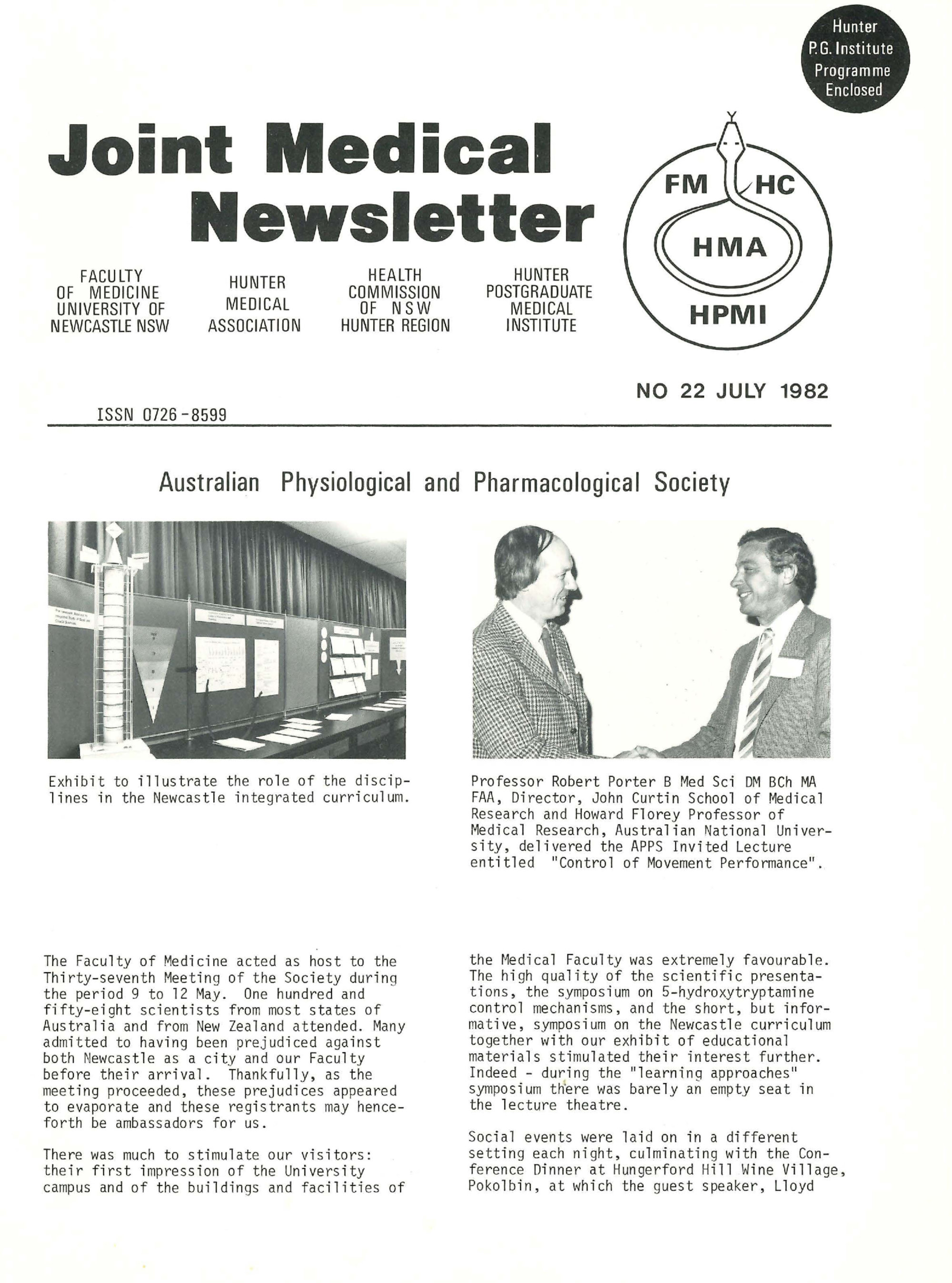 University of Newcastle. Faculty of Medicine, Joint Medical Newsletter No. 022, July 1982, [Joint_Medical_Newsletter_No_022_July_1982]. Living Histories, accessed 30/04/2026, https://livinghistories.newcastle.edu.au/nodes/view/110002
