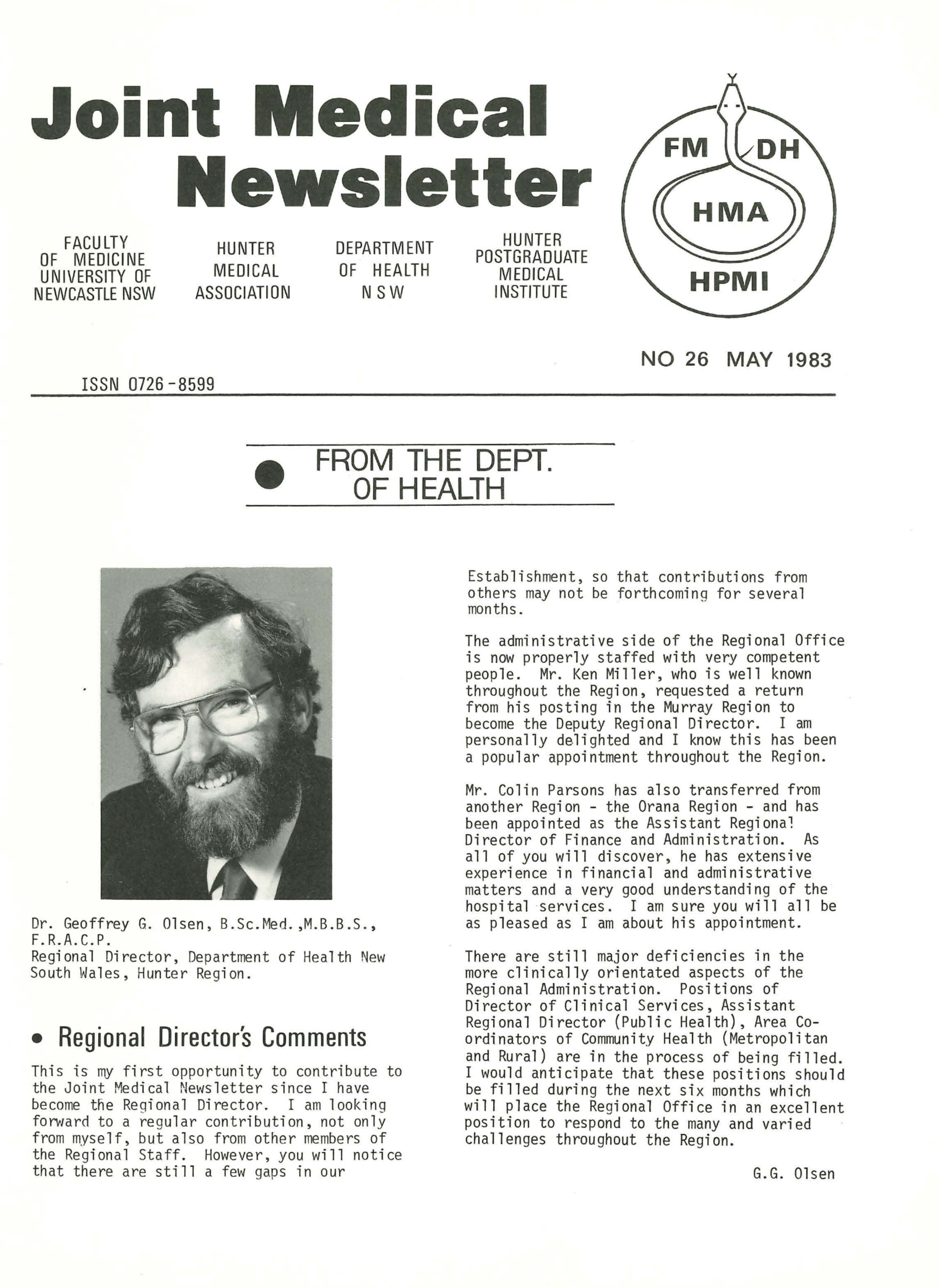 University of Newcastle. Faculty of Medicine, Joint Medical Newsletter No. 026, May 1983, [Joint_Medical_Newsletter_No_026_May_1983]. Living Histories, accessed 29/04/2026, https://livinghistories.newcastle.edu.au/nodes/view/110006