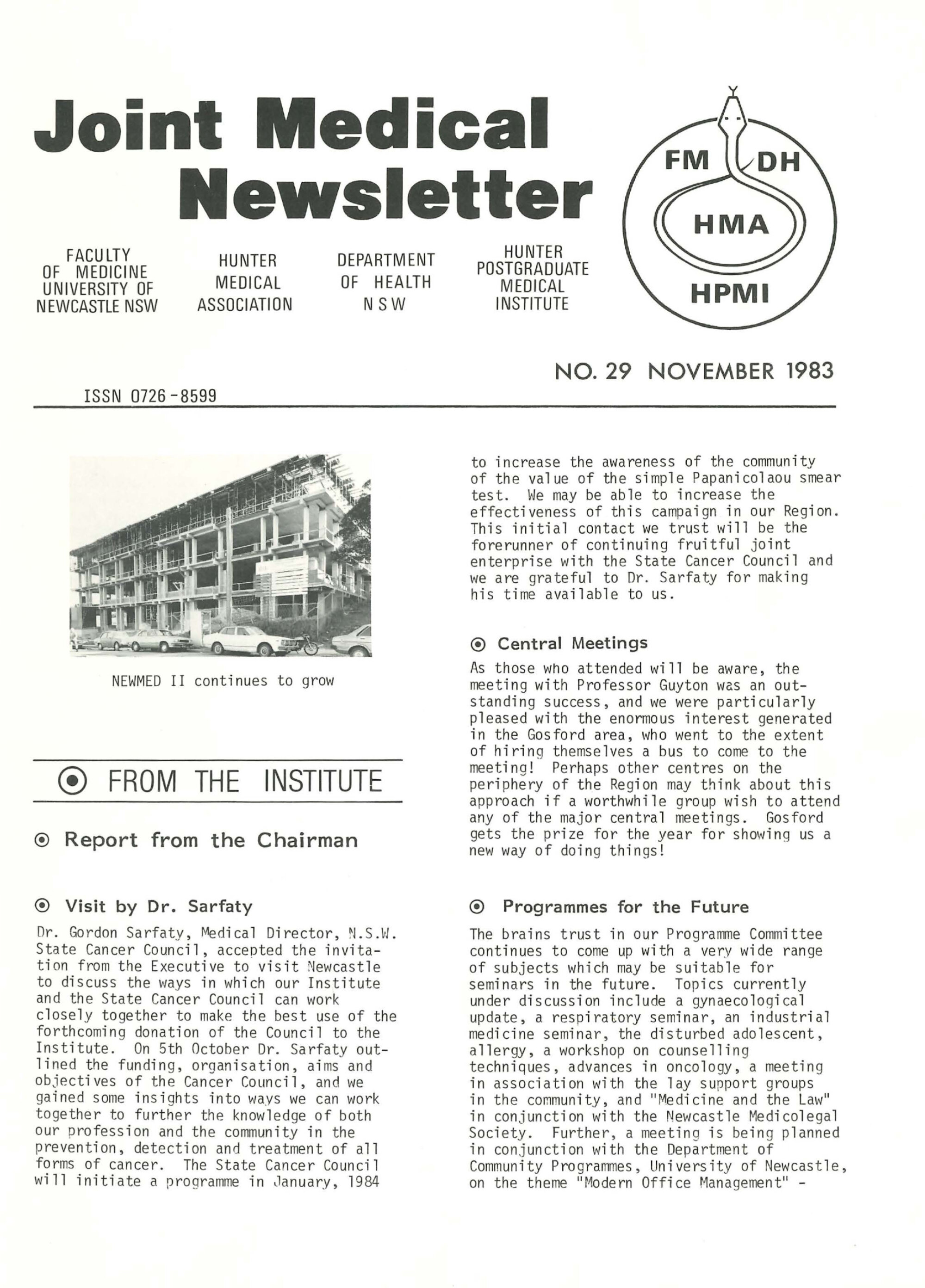 University of Newcastle. Faculty of Medicine, Joint Medical Newsletter No. 029, November 1983, [Joint_Medical_Newsletter_No_029_November_1983]. Living Histories, accessed 17/04/2026, https://livinghistories.newcastle.edu.au/nodes/view/110009