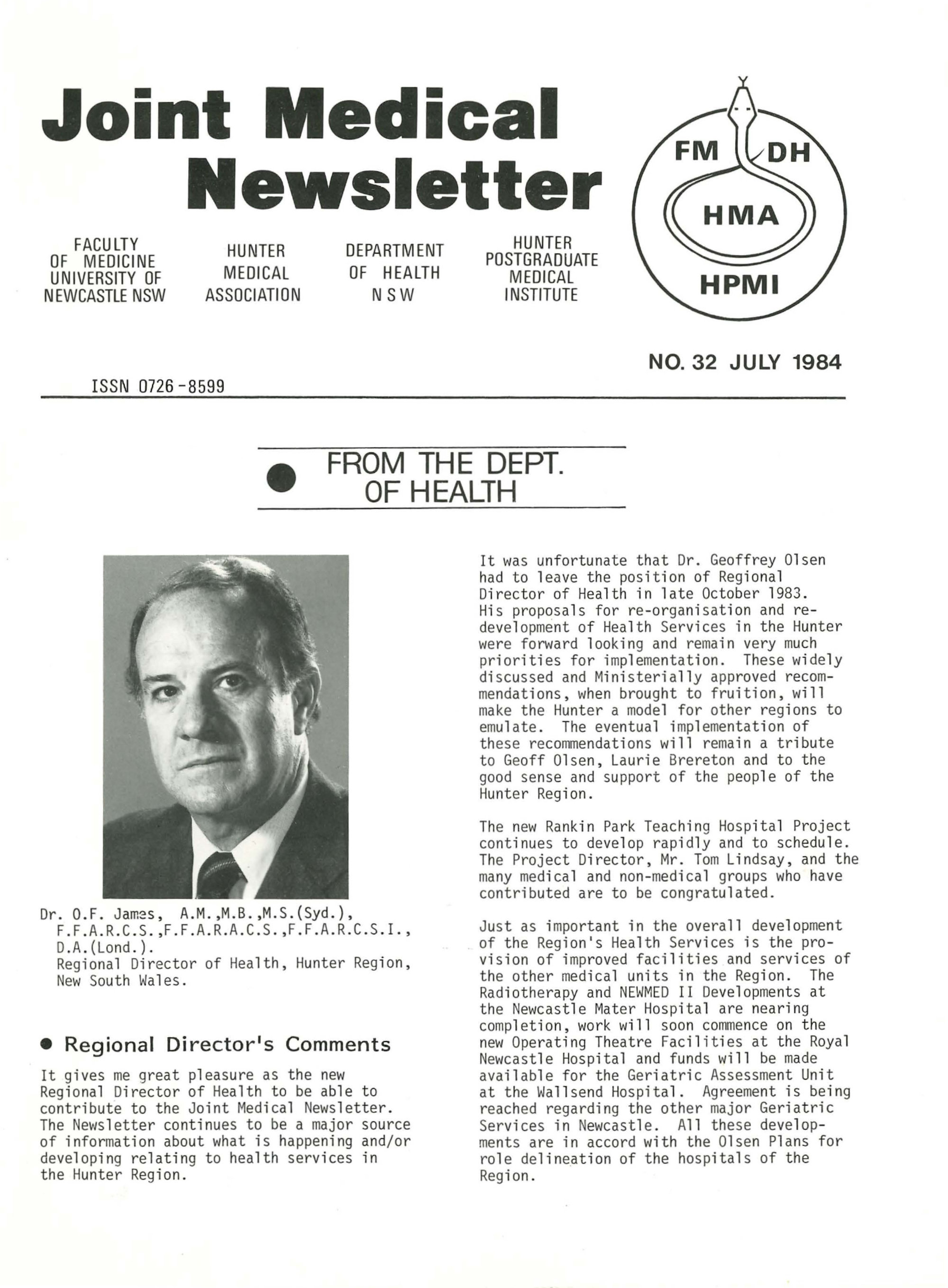 University of Newcastle. Faculty of Medicine, Joint Medical Newsletter No. 032, July 1984, [Joint_Medical_Newsletter_No_032_July_1984]. Living Histories, accessed 19/03/2026, https://livinghistories.newcastle.edu.au/nodes/view/110012