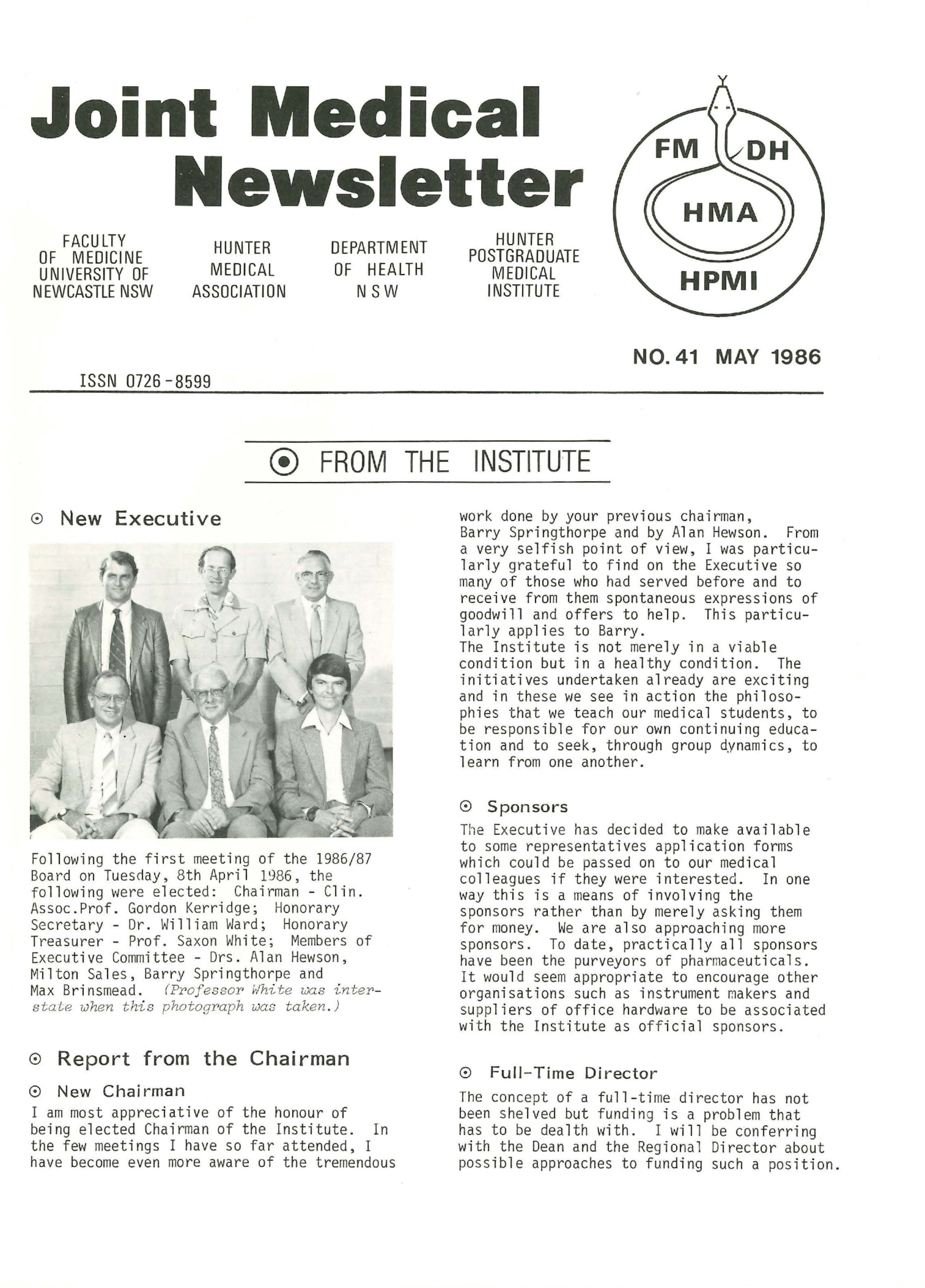 University of Newcastle. Faculty of Medicine, Joint Medical Newsletter No. 041, May 1986, [Joint_Medical_Newsletter_No_041_May_1986]. Living Histories, accessed 17/04/2026, https://livinghistories.newcastle.edu.au/nodes/view/110021