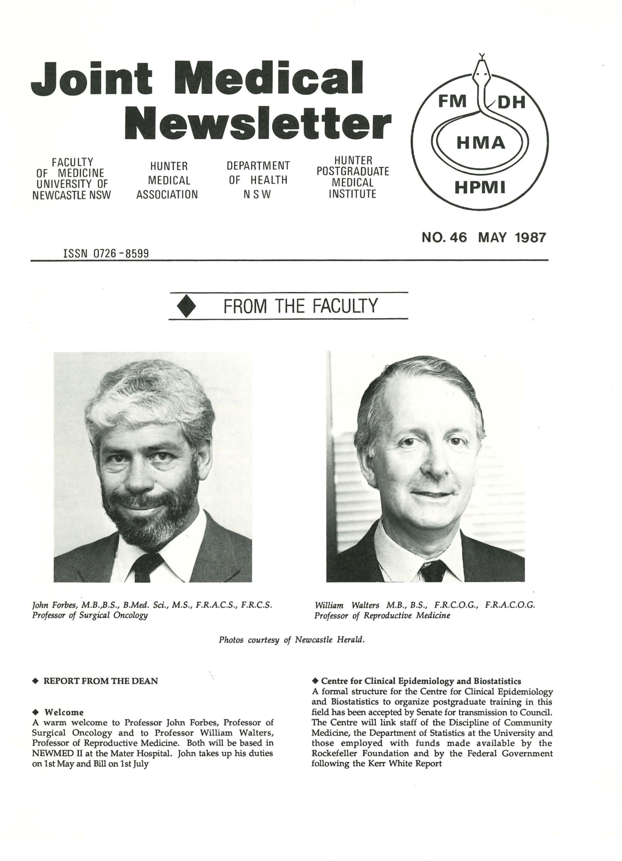University of Newcastle. Faculty of Medicine, Joint Medical Newsletter No. 046, May 1987, [Joint_Medical_Newsletter_No_046_May_1987]. Living Histories, accessed 19/03/2026, https://livinghistories.newcastle.edu.au/nodes/view/110027