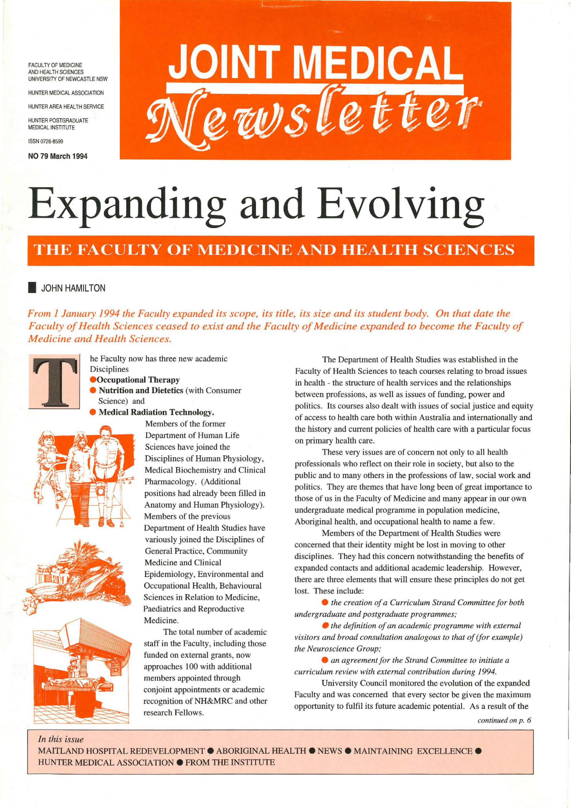 University of Newcastle. Faculty of Medicine, Joint Medical Newsletter No. 079, March 1994, [Joint_Medical_Newsletter_No_079_March_1994]. Living Histories, accessed 21/04/2026, https://livinghistories.newcastle.edu.au/nodes/view/110059
