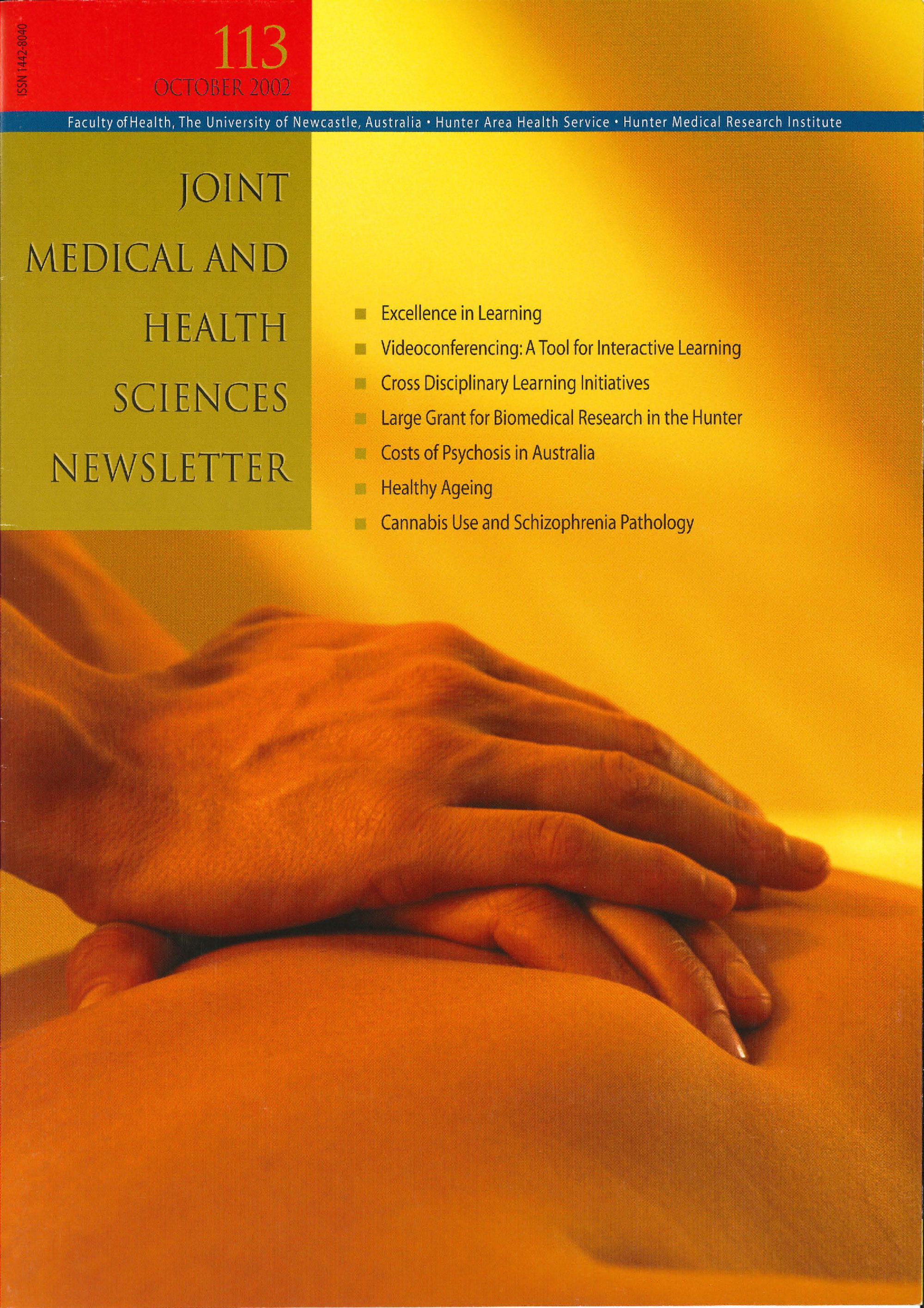 University of Newcastle. Faculty of Medicine, Joint Medical Newsletter No. 113, October 2002, [Joint_Medical_Newsletter_No_113_October_2002]. Living Histories, accessed 04/04/2026, https://livinghistories.newcastle.edu.au/nodes/view/110093
