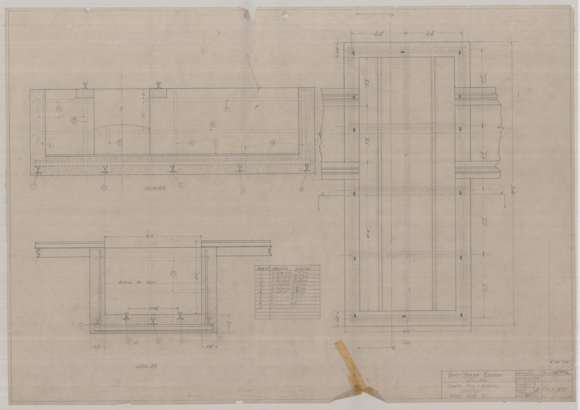 South Maitland Railways Pty Ltd - Property plans and buildings - workshops - wheel drop pit, 20 January 1956 (;20/1/1956), [SMR_5-5-0899]. Living Histories, accessed 14/04/2026, https://livinghistories.newcastle.edu.au/nodes/view/110154