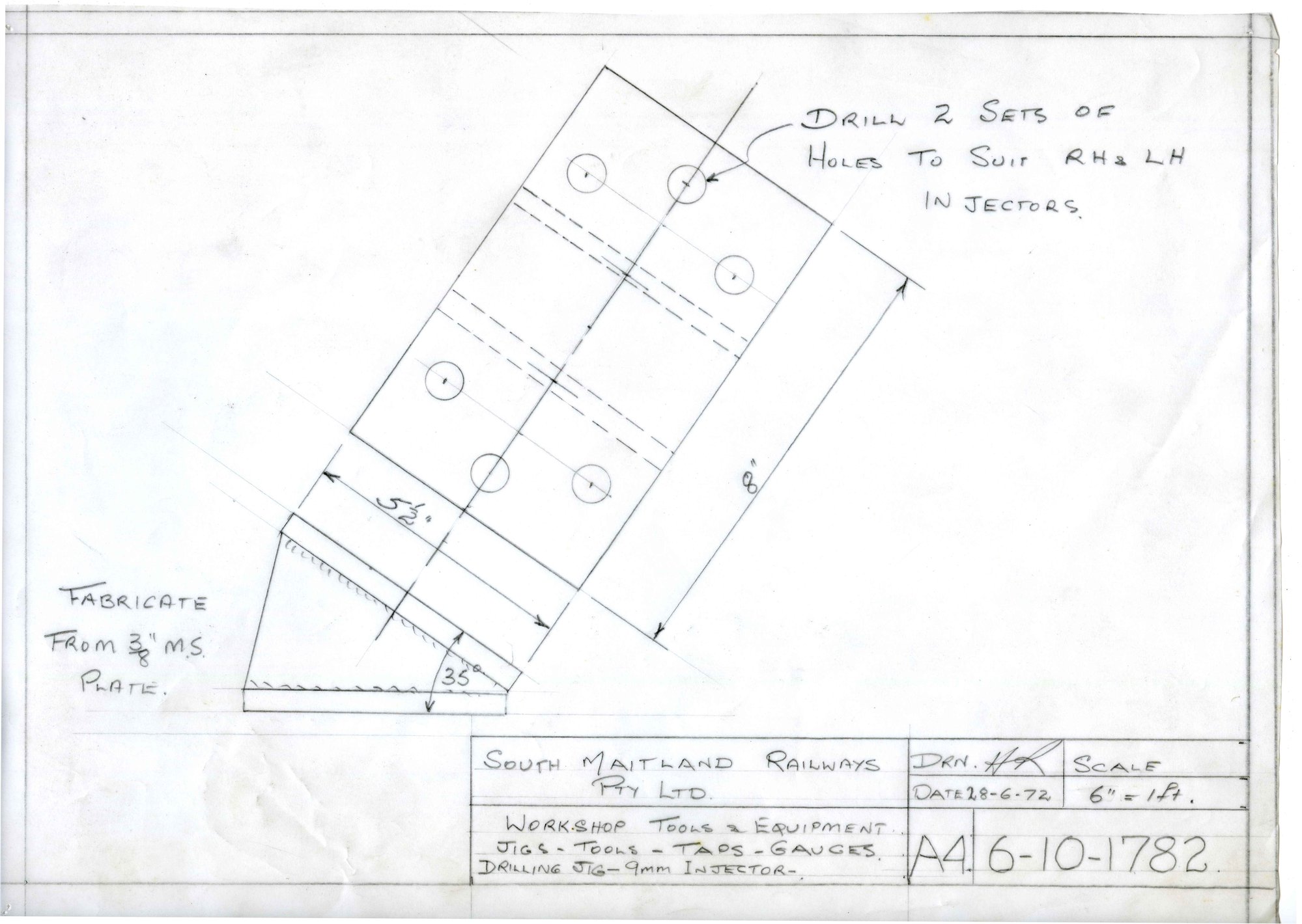 South Maitland Railways Pty Ltd workshop tools & equipment - jigs, tools, taps, gauges, drilling jig, 9 mm injector, 28 June 1972 (28th June 1972), [6-10-1782]. Living Histories, accessed 14/04/2026, https://livinghistories.newcastle.edu.au/nodes/view/110178