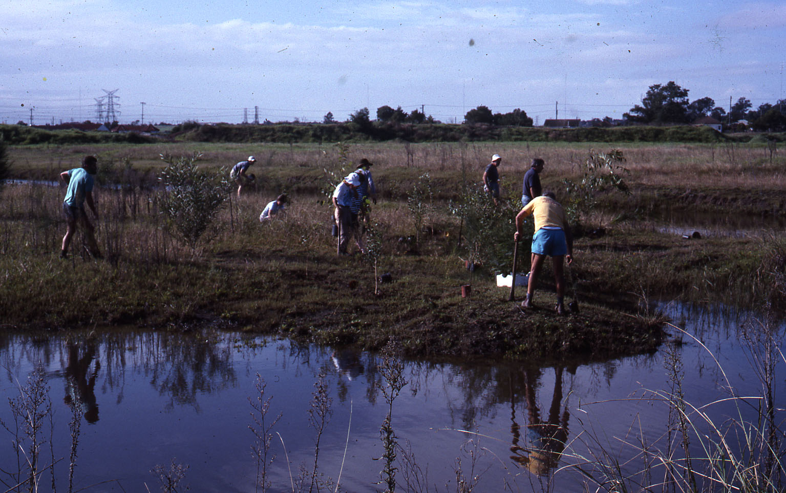 Planting the island, Shortland Wetlands, NSW, Autumn 1989 (Autumn 1989), [HWB4_0059]. Living Histories, accessed 01/05/2026, https://livinghistories.newcastle.edu.au/nodes/view/110237