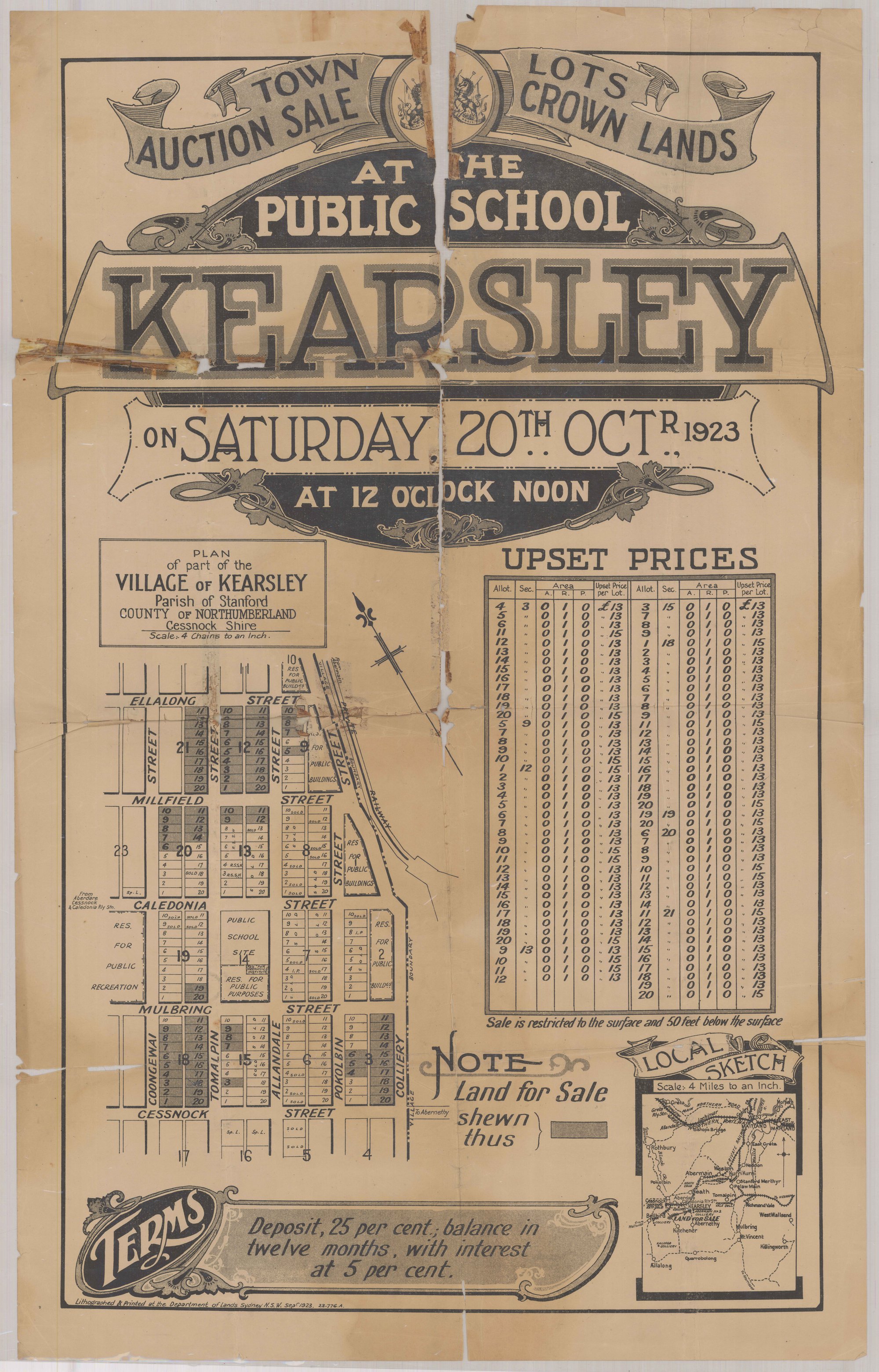 Department of Lands, Sydney, NSW, Kearsley subdivision plan, 20 October 1923 (20th October 1923), [kearsley]. Living Histories, accessed 14/04/2026, https://livinghistories.newcastle.edu.au/nodes/view/110278