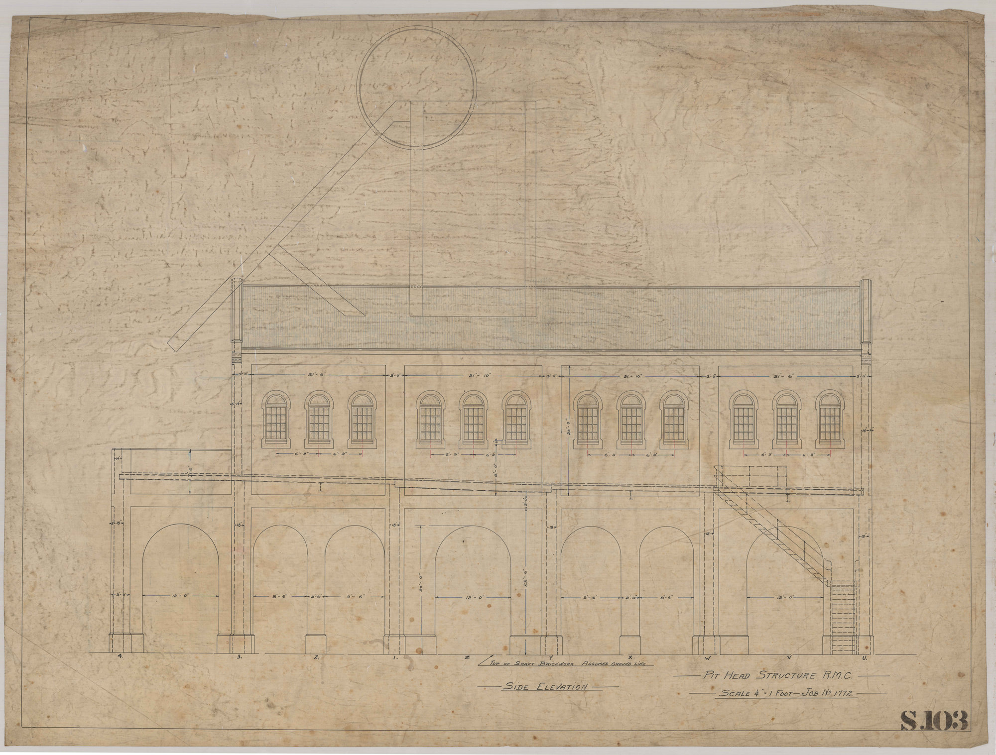 Side elevation, pit head structure, Richmond Main Colliery, Kurri Kurri, NSW, [S103]. Living Histories, accessed 24/03/2026, https://livinghistories.newcastle.edu.au/nodes/view/110281
